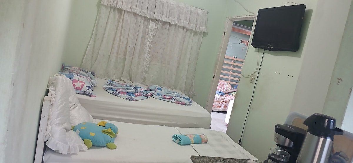Hangulatos, csendes hely. Campinas, IBM, EMS, DeLL közelében, és kevesebb mint 1 km-re a Rod. Bandeirantes-től. Földszint, hálószoba ágyneművel, takarókkal és törölközőkkel, egyszerű, de tiszta, légkondicionálóval. Teljes felszerelésű konyha, sót, cukrot, kávét és korlátozott mennyiségű olajat kínálunk (vendégek, arra kérünk titeket, hogy vigyázzatok az összes eszközre, és hagyjátok tisztán őket) Saját garázs automata kapuval. Okostévé YouTube- és Netflix-hozzáféréssel a fiókodba való bejelentkezéshez