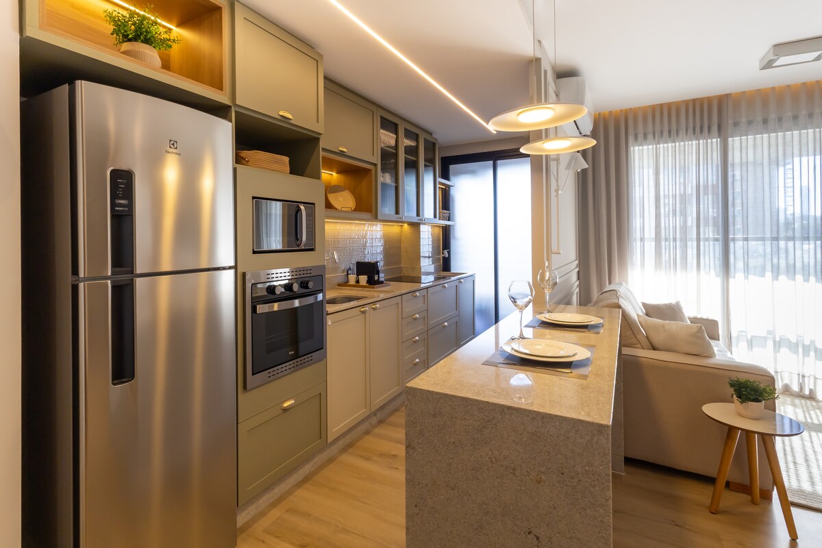 Studio moderno, luxuoso ,de 47m², localizado em condomínio residencial à Rua Duque de Caxias, 880, a passos de distância do Cambuí. Próximo a bares, restaurantes, supermercados, cafés e muito mais. Lindamente decorado e equipado, cama tamanho queen, closet, água quente em todas as torneiras, cafeteria Nespresso, 2 aparelhos de ar condicionado, TV 50" giratória (acesso da sala e quarto), ducha higiênica no banheiro e estação de trabalho para duas pessoas. Condomínio com lazer incrível.