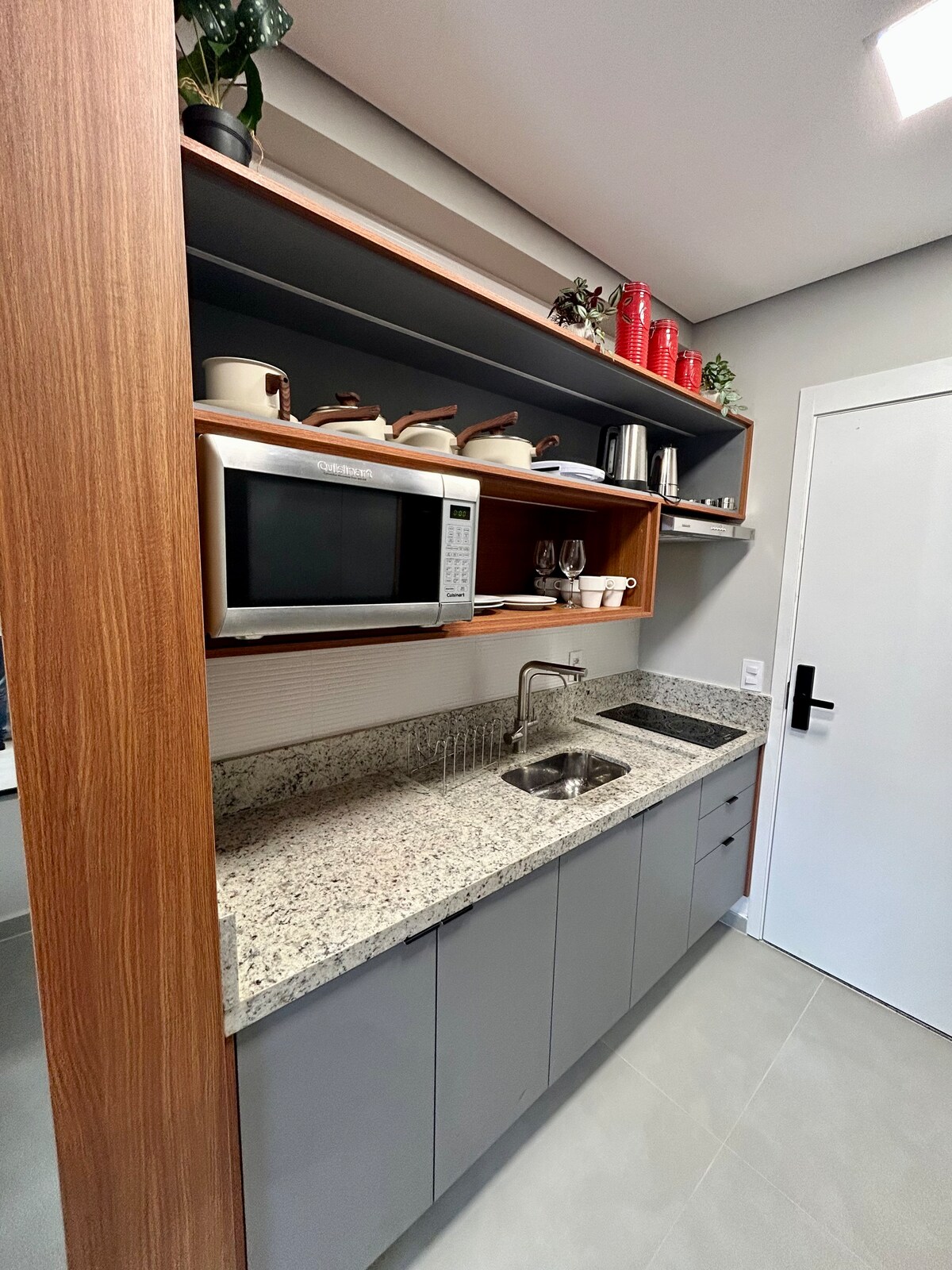 Butikstúdió Perdizes szívében, dizájnprojekttel. Egyedi asztalosmunka, egyedi bőrágy, 500-as szálsűrűségű ágynemű, szizálszőnyeg, sötétítőfüggönyök, légkondicionáló. A Casa Delas által válogatott étkészlet — mindegyik megvásárolható. Két kézzel készített darab az északkeleti régióból lélekkel tölti meg a helyet. Klímaszabályozott borhűtő eladó palackokkal, hangulatos étkezősarok, megvilágított üvegszekrény és butikhotel hangulat. A legalább 7 éjszakás foglalások esetén az első napon reggelit kínálunk.
