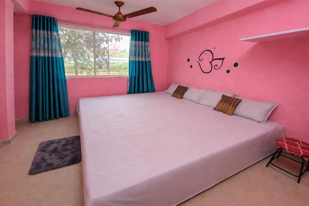 Comfortable 2BHK Stay Near Mahakaleshwar Temple – Ujjain Ideal for temple visit Just 3 km from Shri Mahakaleshwar Temple, perfect for pilgrims and tourists visiting Ujjain. Spacious 2 Bedrooms with Attached Bathrooms Clean, well-maintained rooms Comfortable beds for restful sleep Private attached bathrooms in both bedrooms Large Living Room Area with single bathroom Cozy sofa seating 2 additional single beds (ideal for families or groups) Fully Functional Kitchen Basic cookware and Gas