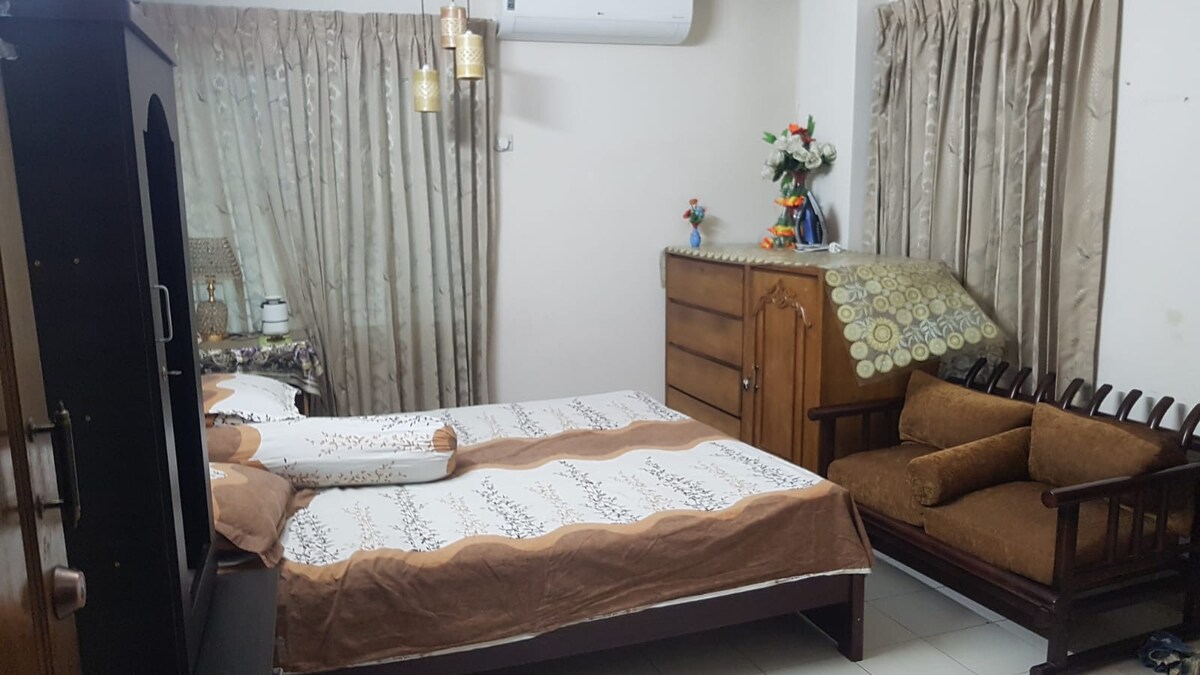 Ez a hangulatos, 2 hálószobás lakás tökéletes a családok számára, és az otthonodtól távol is otthon érezheted magad! Bosila buszpályaudvar közelében, Mohammadpur, Dhaka- Amit imádni fogsz: . 2 tágas hálószoba 1 légkondicionálóval . 2 modern fürdőszoba . Teljesen felszerelt konyha gáztűzhellyel, mikrohullámú sütővel és hűtőszekrénnyel. . Szupergyors Wi-Fi és okostévé . Meleg víz .3 nagy erkély . Két lift (8. emelet egy 10 emeletes épületben) Déli fekvésű lakás – természetesen világos és energiatakarékos . Élvezd a nyugalmat, a higiéniát és az otthonos kényelmet