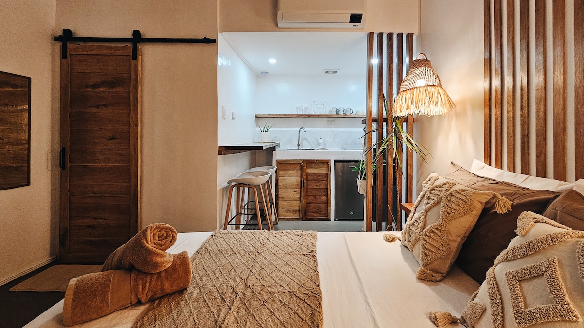 Welcome to Island Balay! Located in the heart of General Luna, This Solar powered listing offers a large fully furnished super deluxe studio! Our home is equipped with a large solar power system and battery backup, ensuring you have a reliable and comfortable stay even during Siargao’s common power outages. This Large solar system will provide you full access to everything! Air Conditioning, Starlink, water supply, water heater, lights, fans, power outlet’s, kitchen appliances!