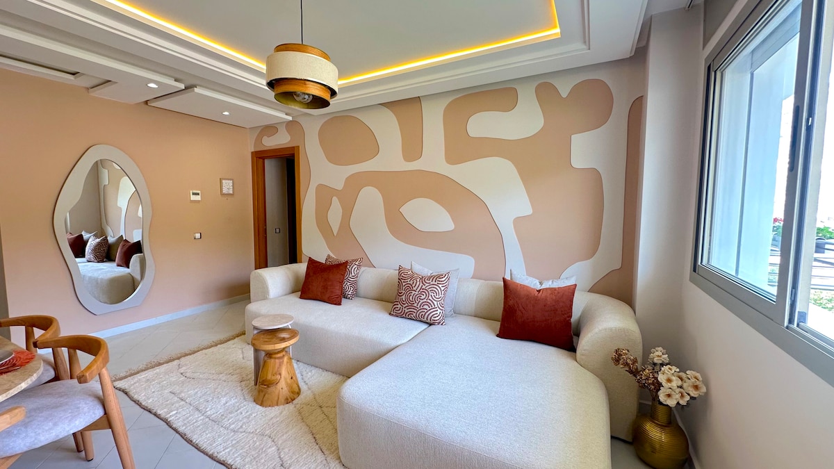 Ez az egyedi hely közel van a hullámok hangjához ebben a világos tengerparti lakásban Taghazout szívében. Élvezd a reggeli kávédat a saját erkélyen, ahonnan lenyűgöző kilátás nyílik az óceánra. Ez a hangulatos lakás ideális pároknak, szörfösöknek vagy bárkinek, aki a tenger előtt szeretne pihenni. Csak pár lépésre a strandtól, éttermektől, kávézóktól és szörfiskoláktól — minden a közelben van.