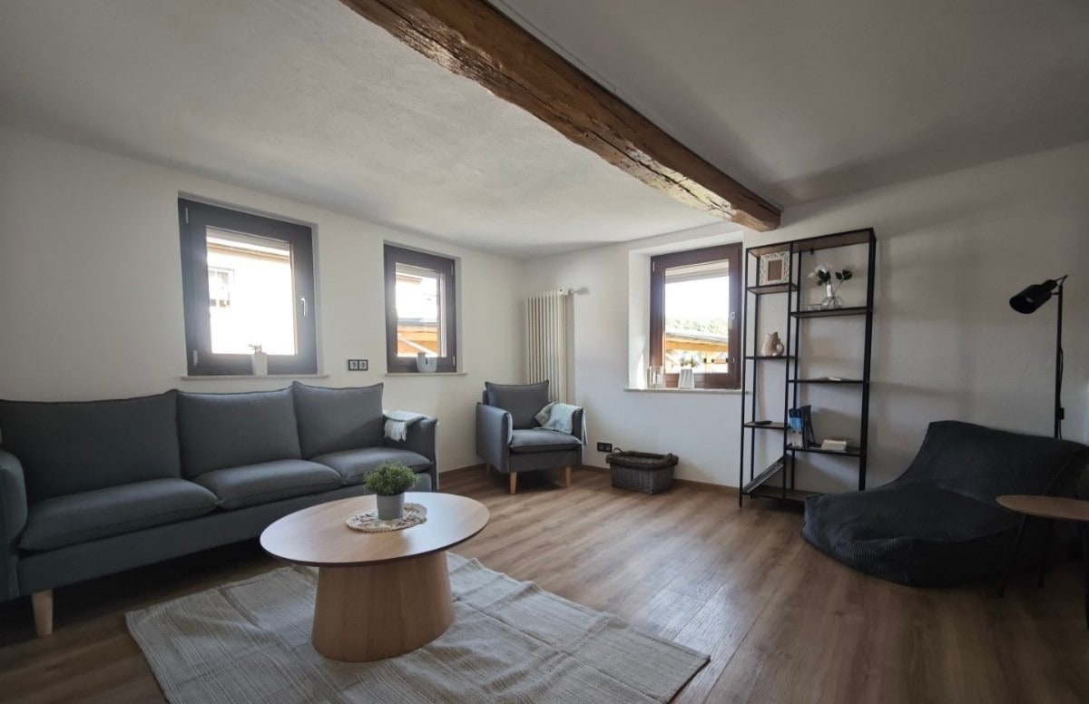 Az eredeti farm egykori gyülekezetét szeretettel alakítottuk át tágas padlásszobává. Az oromzatba épített lakás nagyon különleges bájt áraszt. A 75 négyzetméteres lakásban van egy hálószoba franciaággyal és babaággyal, valamint egy nagy nappali nyitott, teljesen felszerelt konyhával. A modern fürdőszobában fűtött falú zuhanyzó található.