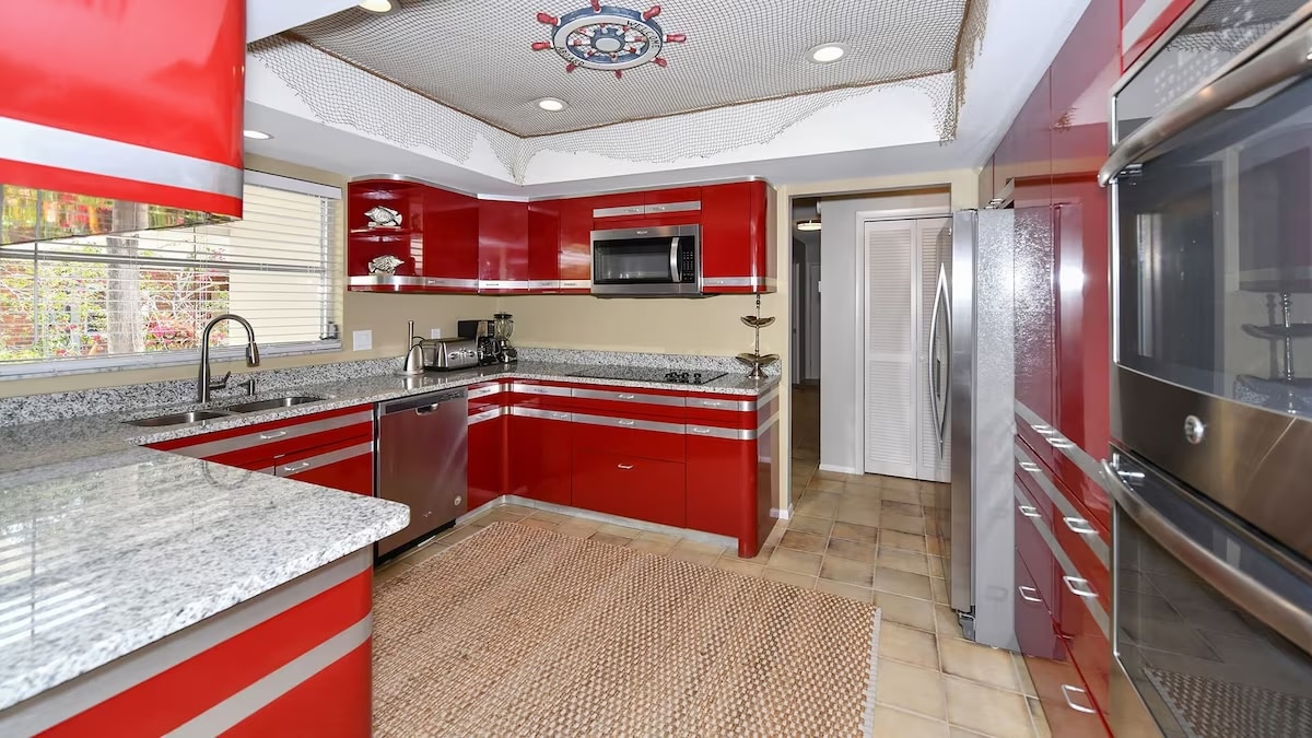Szállj meg Sarasota egyik legjobb értékelésű Airbnb-szálláshelyén, amely tökéletes helyen, a híres Siesta Key és számos más lenyűgöző strand között található. Pihenj az újonnan felújított, fűtött medence mellett, ahol előkelő nyugágyak, buja kerti kilátás és elegáns, bőséges ülőhelyekkel rendelkező terasz vár. A beltérben modern, tengerparti nyaralás témájú, nyitott elrendezésű dizájn vár, teljesen felszerelt konyha, gyors Wi-Fi és okostévé minden hálószobában. A helyszíni Superhostod a közelben tartózkodik, de teljes munkaidőben dolgozik, és teljes magánéletet biztosít.
