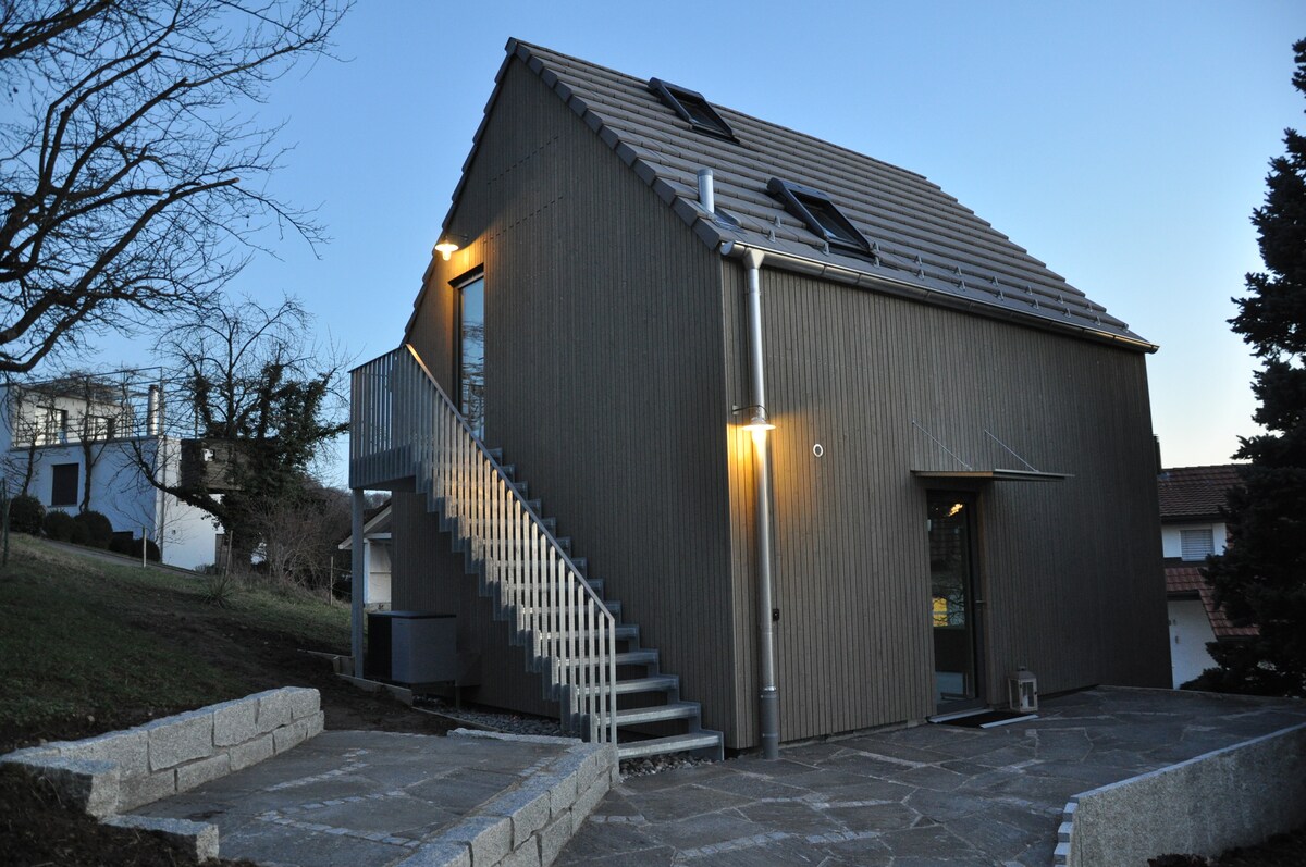 Modern, újonnan berendezett lakásom rengeteg helyet és stílusos légkört kínál. Egy terasz ülőhellyel és grillezővel várja a pihenni vágyókat. Játszótér és elektromos töltőállomással felszerelt parkolóhely is rendelkezésre áll. A csendes, zöld környezet ideális a természet szerelmeseinek. A közelben hegyek találhatók túrázáshoz és síeléshez. A zürichi repülőtér mindössze 16 km-re található, a svájci határ pedig számos kirándulási lehetőséget kínál.
