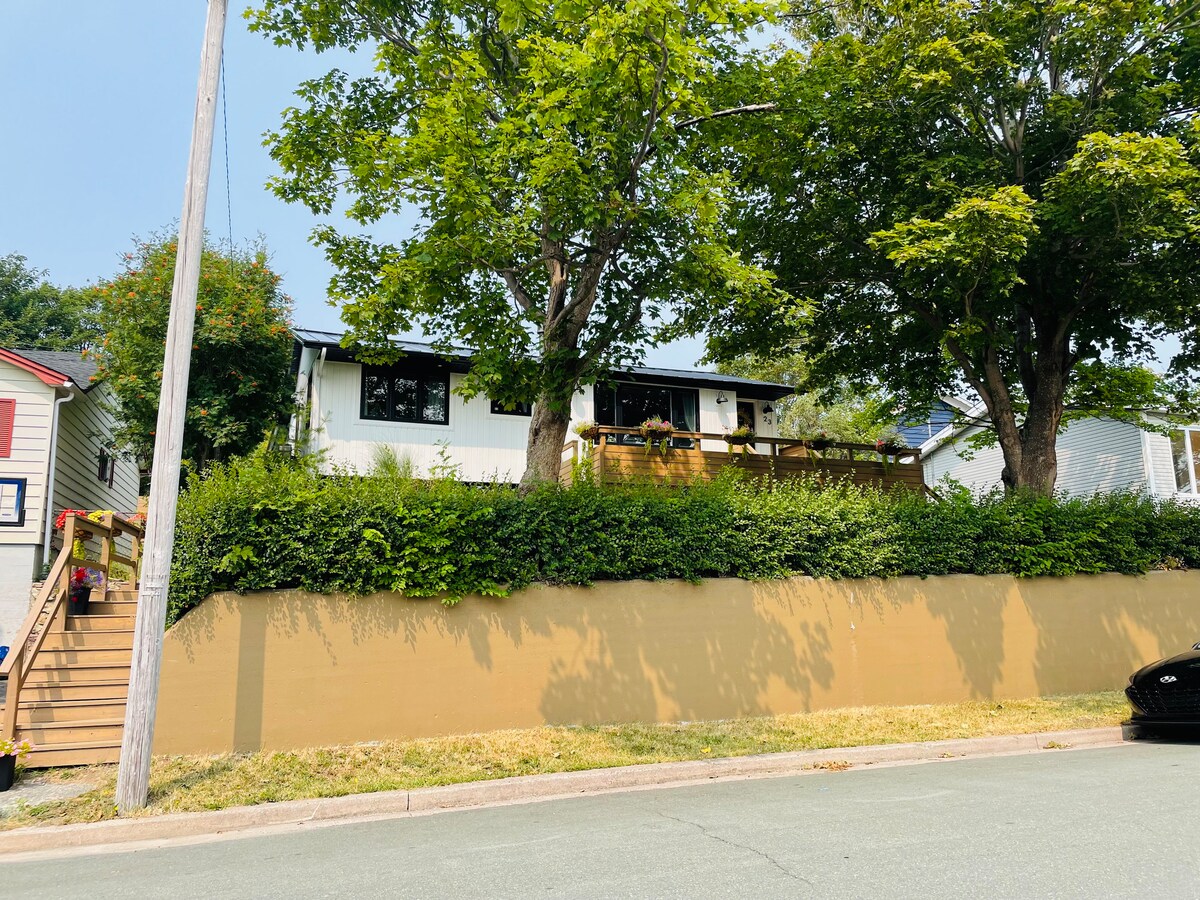 Dőlj hátra, és lazíts ezen a nyugodt, stílusos helyen. Élvezd a privát bejáratot, a légkondicionálót és a nappalit 74 hüvelykes TV-vel (Netflix, Crave, Disney Plus, Prime és kábeltévé). Tökéletes hely a St. John's felfedezéséhez. 3-5 perc taxizás a belvárosba, parkokba, egyetemekre, éttermekbe és üzletekbe. Sétálj el a belvárosba 20 perc alatt. 7 perc taxival a repülőtérig. Ez a teljes otthon újonnan felújított, és jelenleg nem frissül a Google Térképen. Wifi, hűtőszekrény, Keurig, vízforraló és mikrohullámú sütő. Nincs főzés, csak kávé és tea.