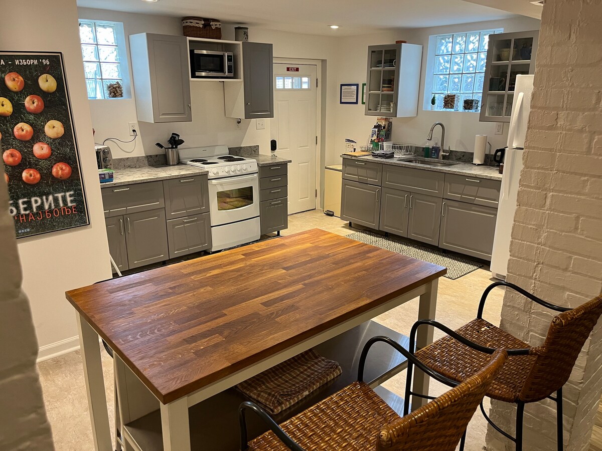 Örömmel várjuk, hogy vendégül lássunk a hangulatos stúdióalagsorunkban! Az alábbiakat fogod szeretni: – Ésszerű takarítási díj, rejtett költségek nélkül 🧹 - Saját bejárat 🚪 - Ingyenes, utcán kívüli parkolás közvetlenül az ajtó előtt 🚗 – Ingyenes elektromosautó-töltő (ChargePoint Flex) ⚡️ – Nemrég felújított, modern kényelmi szolgáltatásokkal 📟 - 5 perc sétára a Fort Totten metrótól (piros és zöld vonalak) 🚊 - Kültéri kerti terasz 🪴 - Ingyenes mosógép és szárítógép használata 🧺 Washington D.C.-ben nem találsz ennél jobb ár-érték arányt! 😊