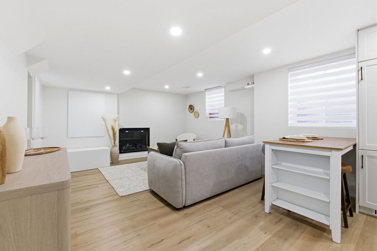 Welcome to Harbour Haven. Stay in this bright seasonly decorated PRIVATE guest suite located in the lower level of my owner-occupied home. Just a 15 minute walk to Penetang Bay and 5 minutes from the hospital and tons of local beautiful beaches nearby. The suite features large windows, full fridge, coffee maker, kettle, microwave queen bedroom, a cozy sectional sofa, electric fireplace and smart TV. Light continental breakfast basket at the beginning of your stay.