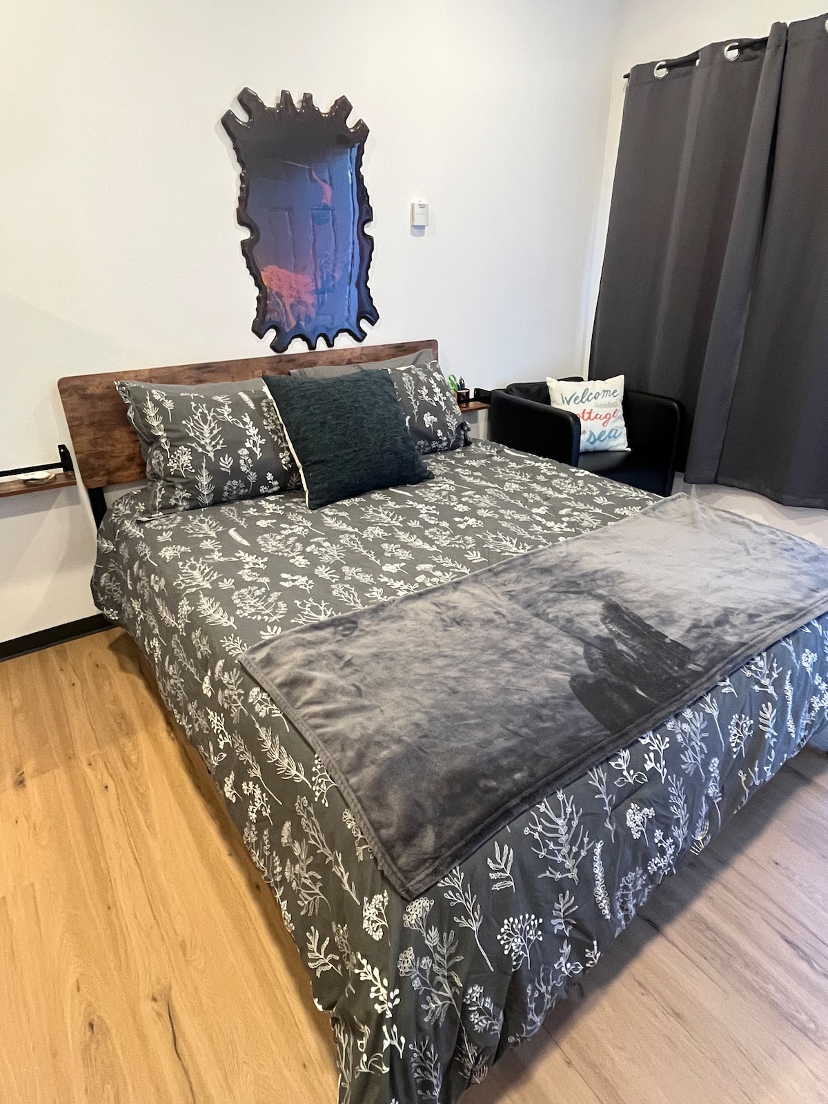 A Sitka Bungalow egy tiszta, újabb, egyedi, kézműves stílusú otthon, amit mi terveztünk és építettünk! Kényelmesen található Sitka gyönyörű belvárosában. Bungalónk egy hangulatos, két hálószobás otthon tömör tölgyfapadlóval, padlófűtéssel, nyitott nappalival, nagy konyhával és étkezővel. A hely hangulata tiszta és klasszikus stílusú. Mindent megtalálsz, amire szükséged van a szálláshelyen eltöltött időd kényelmesebbé tételéhez. Tökéletes Sitka kiruccanás egy párnak, családnak vagy baráti társaságnak.