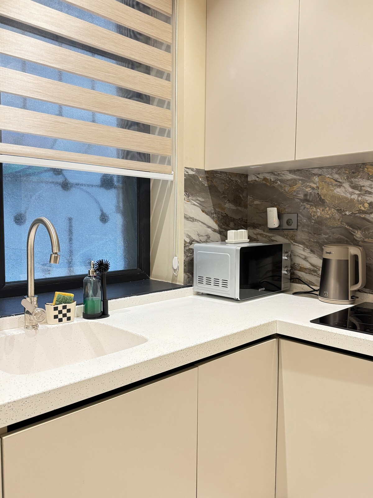 Baku szívében található – mindössze 50 méterre a metrótól és a Nizami utca mellett. A tengerparti sugárút gyalogosan is megközelíthető, így tökéletes kiindulópont a város felfedezéséhez. Az elegáns, loft stílusú stúdió 5 méter magas mennyezettel rendelkezik, ami világos és tágas légkört teremt. Élvezd a hangulatos filmesteket tévé helyett mozi stílusú projektorral. Két vendégnek tervezték, és ötvözi a kényelmet és az eleganciát. 🚬 Tilos a dohányzás. 🚗 Transzfer és autóbérlés kérésre.