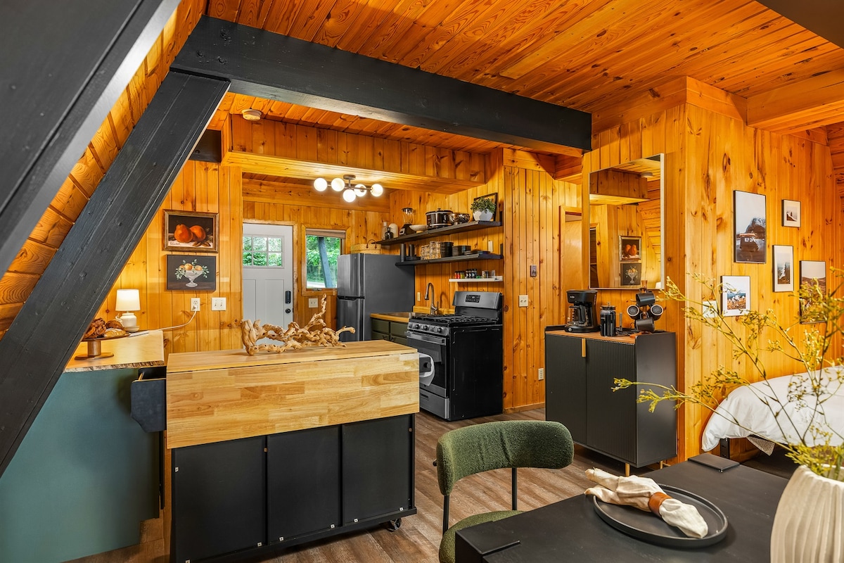 Üdvözöl az álomkiruccanásod a Bass-tó partján! Ez a felújított háromszögház tökéletes menedék pároknak és családoknak, és akár 7 vendég is kényelmesen elfér benne. Amint megérkezel, természetes szépségek, modern kényelmi szolgáltatások és felejthetetlen élmények veszik majd körül. • Pihenj a csillagok alatti pezsgőfürdőben • Lazíts a tóra néző hordószaunában • Süss s'more-okat a tűzrakóhelyen, hintaszékekkel • Nézd a meccset a pavilonban, ahol bár és tévé is van • Fedezd fel a tavat kajakokkal