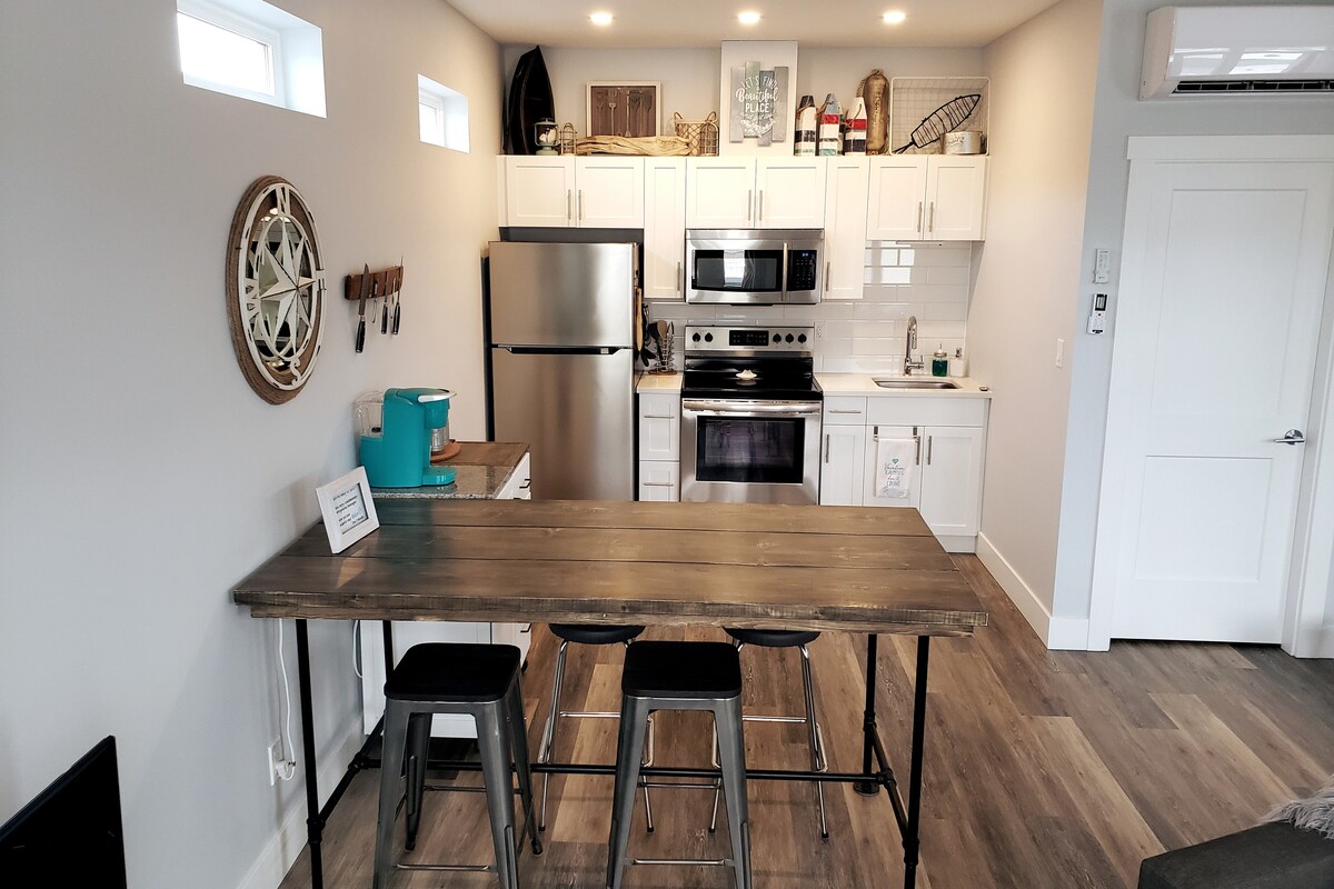 2020 built, cozy 450sq foot, self contained 2nd Story Studio Suite located in the very popular tourist neighborhood of Penticton. We are fully licensed and compliant with the new BC Regulations on short term rentals. Coastal/Beach themed Couples/Singles retreat 3 blocks (5-10 min) walking distance to Okanagan Lake. Walk to SOEC, Convention, Casino, Community Centre, Farmers Market, Wine Experience Centers, downtown, shopping, Marina, Art Galleries, golfing, lakefront restaurants and more.
