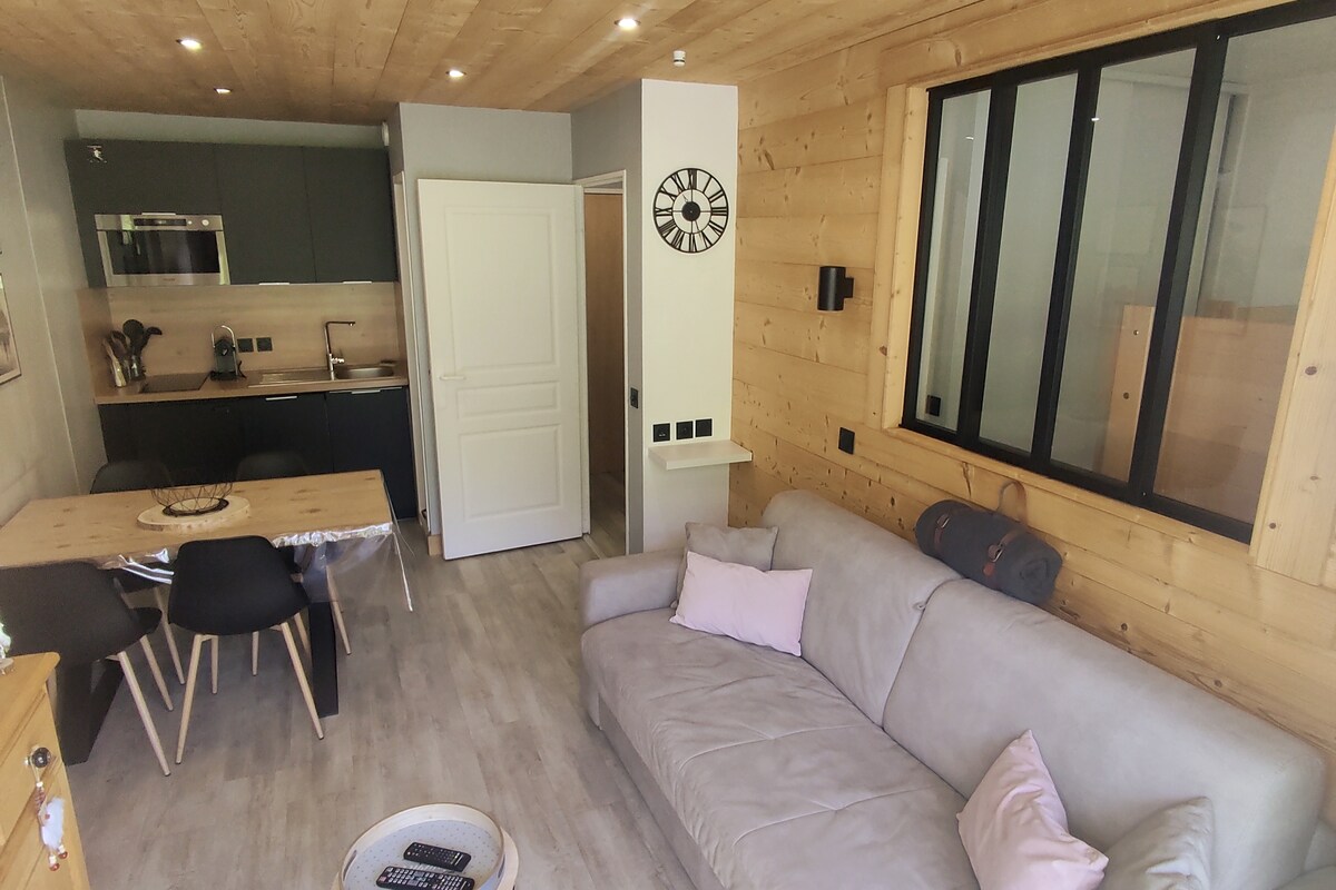 Apartment of 29m2 for 4 people, one bedroom, south facing, in the residence 3* ** Les Chalets de la Vallée d 'Or, on the edge of the slope of Les Lutins Saját parkolóhellyel és független síterülettel rendelkezik. Hegyre és falura nyíló kilátás, nem figyelmen kívül hagyva. Ingyenes hozzáférés a beltéri és kültéri fűtött medencéhez. Szauna, biliárd és csocsóasztal áll rendelkezésre Lehetőség sífelvonó-csomagok, valamint kenyér és sütemények vásárlására közvetlenül a recepción.
