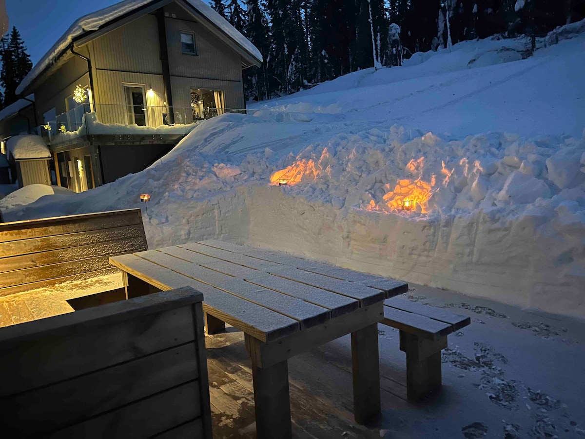 Have fun with your family in this uniqe place with Ski-in/Ski-Out or enjoy all the seasons of the year New build premium house in Sälen/Lindvallen for up to 8 persons. 500 meters to restaurants, spa, after ski etc. The house is located high up in the middle of the hill between the slope Tomas & Hasse, 10 meters from the slope Tomas , a super ski-in ski-out location “Dinner with a view “ from the dinner table
