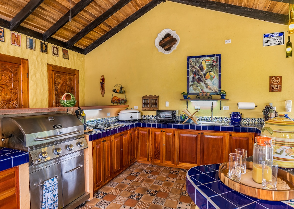 Figyelem: lehet, hogy soha nem akarsz majd hazamenni. Ez az exkluzív, bambuszból épült hegyi kunyhó egy 4 hektáros privát telken található, és teljes magánéletet, valamint rendkívüli természeti környezetet kínál. Innen lélegzetelállító panorámás kilátás nyílik a hegyekre, a völgyekre, a síkságokra, az úszó felhőkre és a Nicoyai-öbölre. A napkelte és a napnyugta a fények és színek folyamatosan változó világában bontakozik ki – ez a látvány valóban megérdemli a „millió dolláros kilátás” kifejezést.