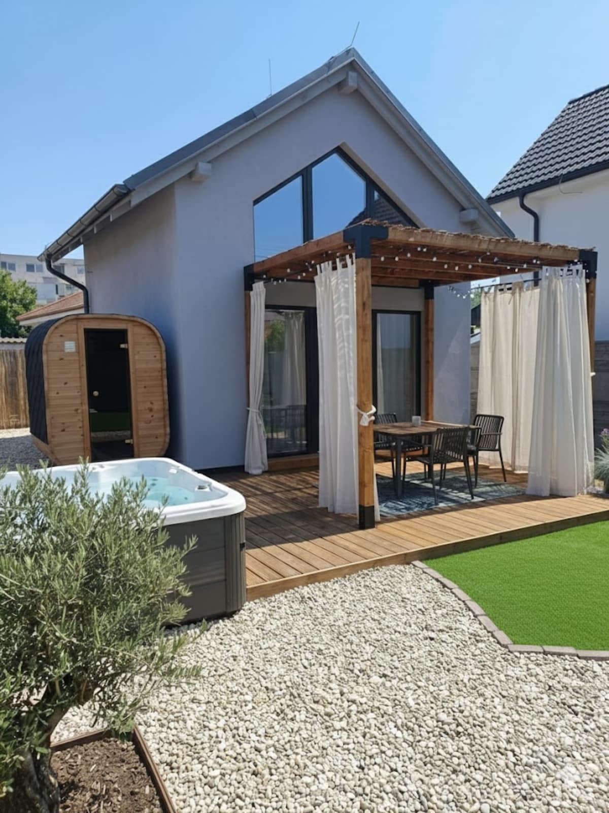 Útulný tiny dom s vyhrievaným privát bazénom.