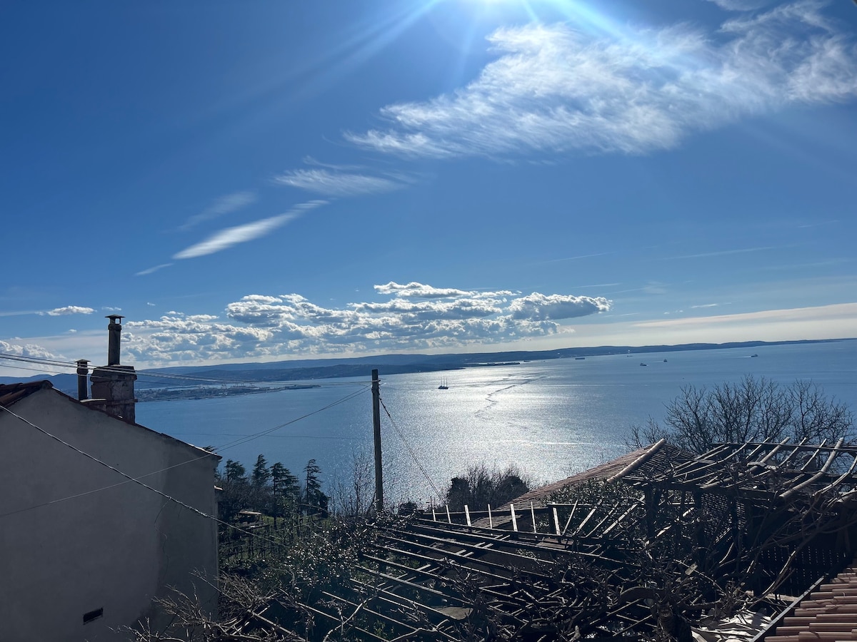 Contovello is an enchanting village on the cliff, 17 minutes away by car or scooter from the seafront in Trieste. The house is over 200 years old and has been lovingly restored with many original features. It is in the main street, 50 meters from the churchyard, where you can enjoy spectacular views of the bay of Trieste, Slovenia, and Croatia beyond. Free parking is available nearby.