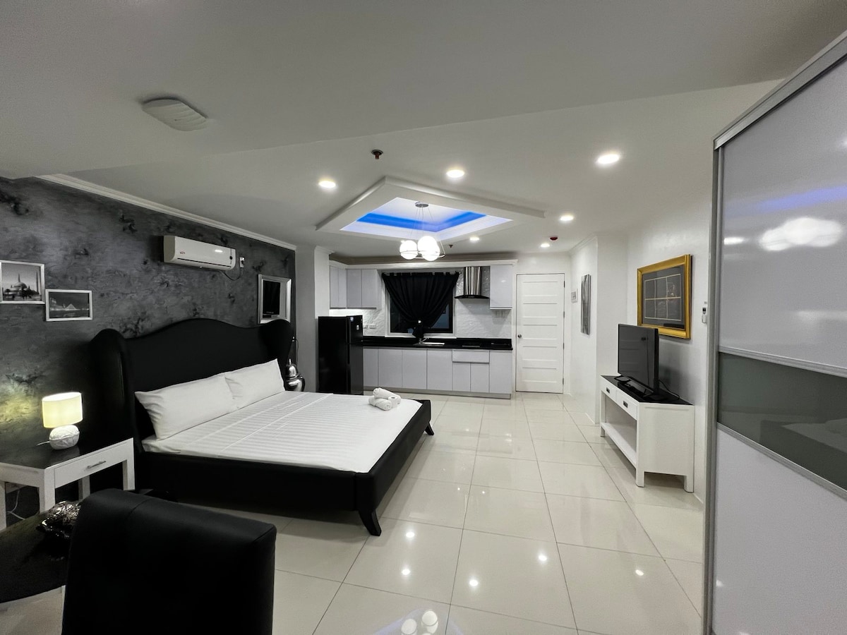 Ez a kiváló elhelyezkedés könnyű hozzáférést biztosít az üzletekhez, bárokhoz, éttermekhez és szórakozáshoz. Az egység erkély, kétszemélyes étkező, munkaterület, kanapé, king-size ágy, 55 hüvelykes TV és konyhai alapkellékek. Élvezd a tetőtéri medencét, az éttermet és az edzőtermet a 2. emeleten. Rövid az út az SM Mall és a Clark Economic Zone bevásárlóközponthoz, amely víziparkot, dinoszauruszparkot és világszínvonalú golfpályát is tartalmaz.