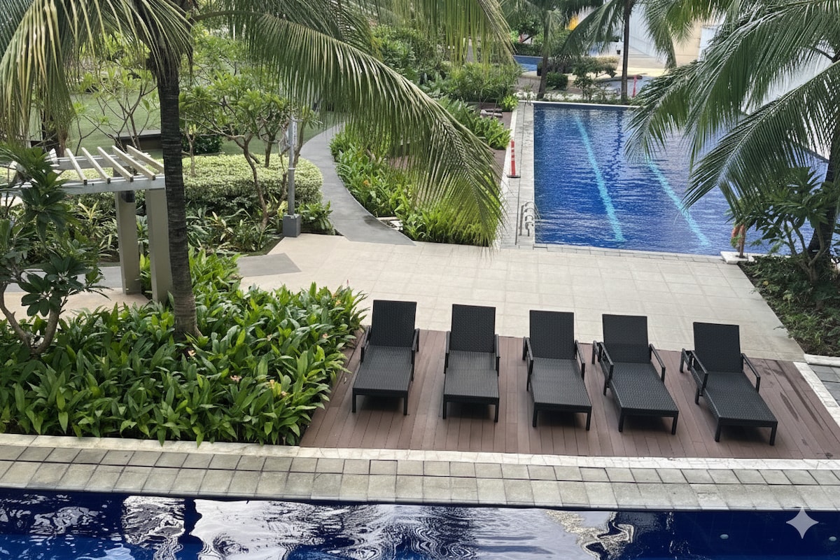 Welcome to Sea Residences Stay in a cozy, resort-style condo just less than 10-min walk to SM Mall of Asia, SMX, IKEA, and SM By the Bay. Close to Ayala Malls, DFA, and NAIA. 🛏️ 28 sqm unit with pool-view balcony 🛋️ Double bed + sofa bed 🍳 Fully equipped kitchen 📺 TV w/ Netflix & 50 Mbps WiFi 🚿 Hot/cold shower + essentials Whether you're in Manila for business or leisure, this cozy and convenient space is the perfect home away from home. Perfect for a relaxing stay in the heart of Pasay!