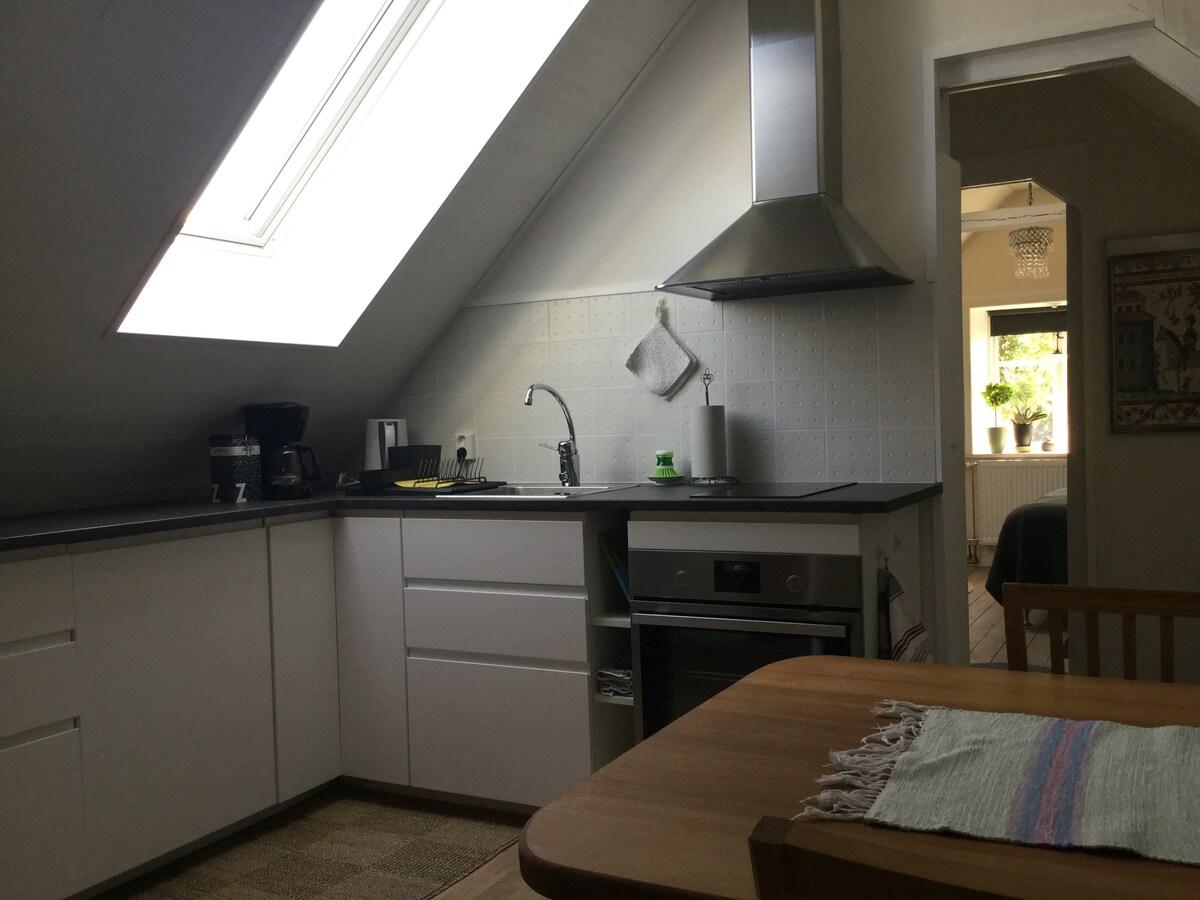 Kellemes és világos tetőtéri lakás, amely a tetőablakon keresztül szellőzik, és négy fő fér el benne. Egy hálószoba franciaággyal és egy konyha kanapéággyal. Séta távolságra a tenger és a strand (150 méter) Jó buszjáratok, közel a buszmegállóhoz. Sétálási és kerékpározási távolság a közeli éttermekhez. Közel más szolgáltatásokhoz. Ha információra van szüksége, örömmel segítünk. Sajnos háziállat!