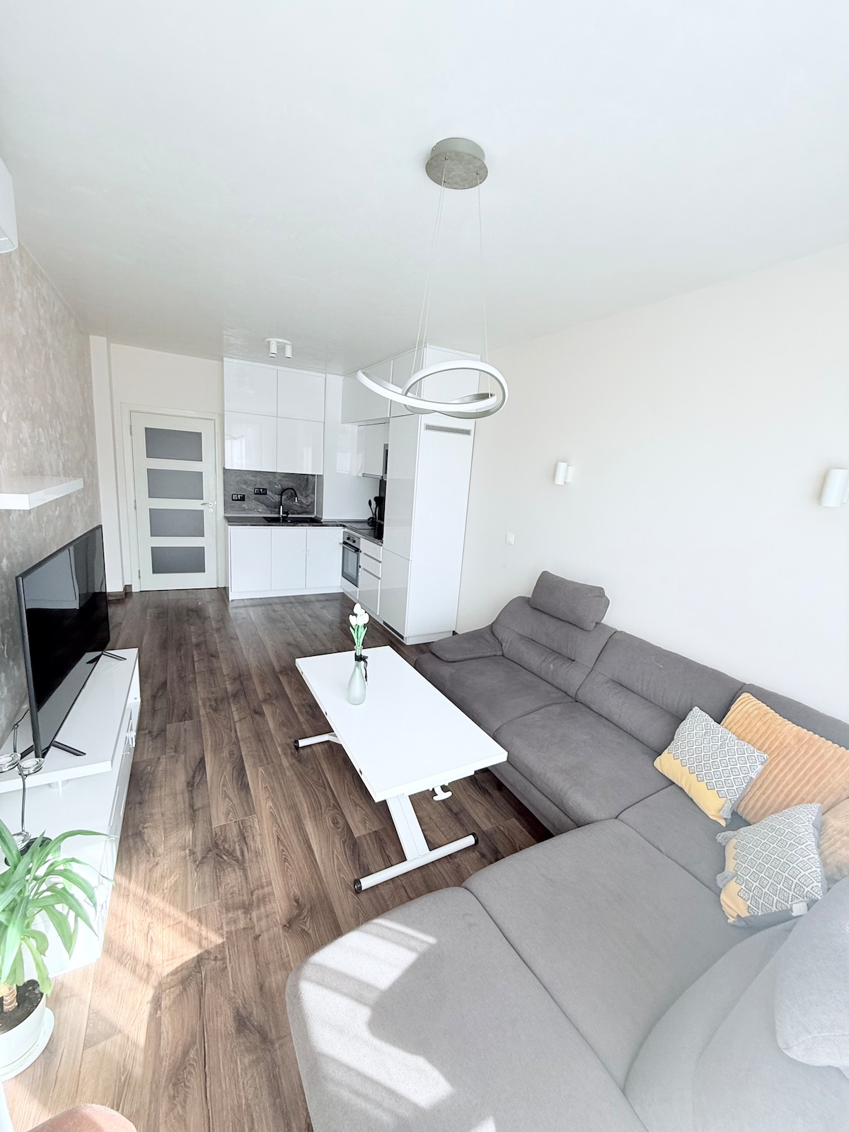 Stílusos és otthonos lakás gyermekes családoknak vagy három felnőttnek. Minden szükséges kényelmi szolgáltatással rendelkezik - teljesen felszerelt konyha sütővel, kerámialapos főzőlapok, mosogatógép, kávéfőző a „Dolce Gusto” kávékapszulákhoz, elektromos kancsó. A fűtést és a hűtést csúcskategóriás légkondicionálóval oldjuk meg. Kényelmes hálószoba két személy (140 x 190 cm) és egy kanapéágy (120 x 190 cm) számára. Van egy 43 hüvelykes okostévé 150 csatornás kábeltévével és nagy sebességű internettel. Öltözőasztal tükörrel és terasszal.