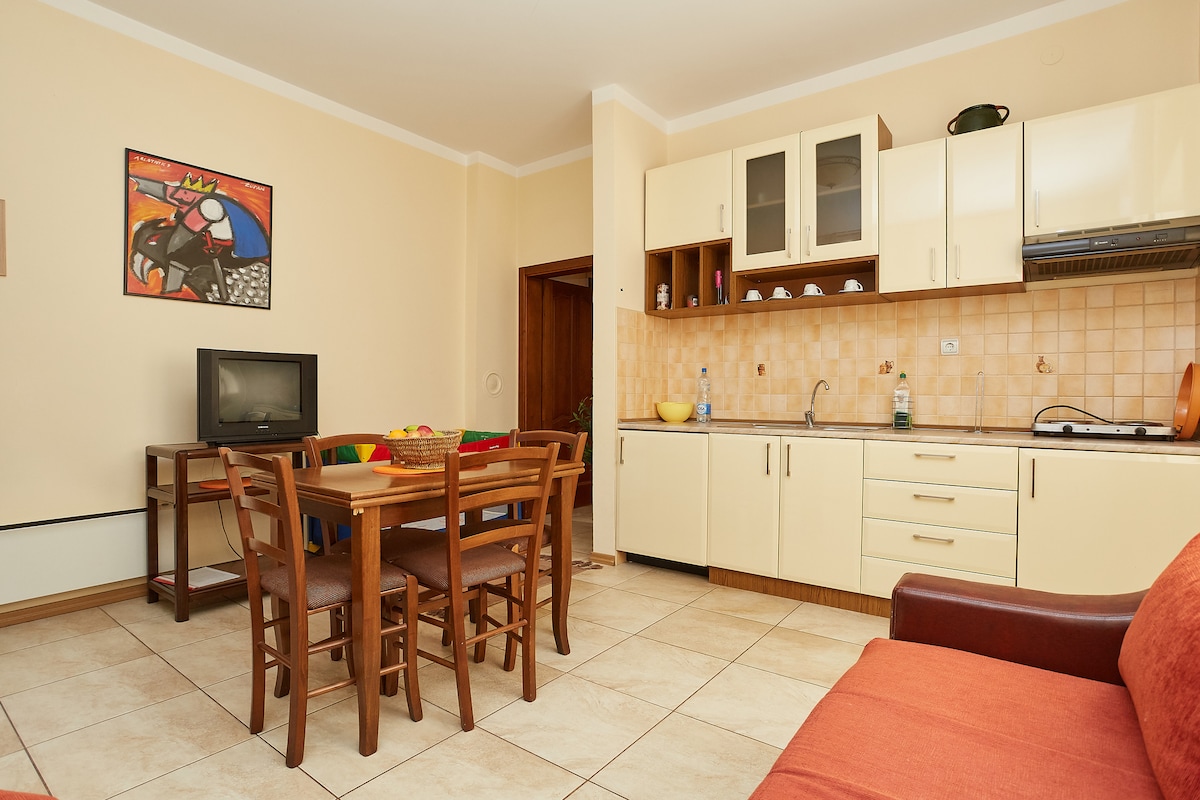 Üdvözlünk a ŽUPAN apartmanokban! Ez egy tágas lakás a földszinten #1 Örömmel kínálunk kényelmes szállást Sokobanja központjában. Mindössze 50 méterre a híres márvány sétánytól, amelyet nyugalom és növényzet vesz körül, a modern tervezésű ŽUPAN villa 6 kiválóan felszerelt, három- és négyágyas lakosztályban, valamint 2 stúdióban várja a vendégeket. Válassz az igényeidnek megfelelő szálláshelyet, és engedd meg, hogy gyorsan és egyszerűen foglalhassunk.