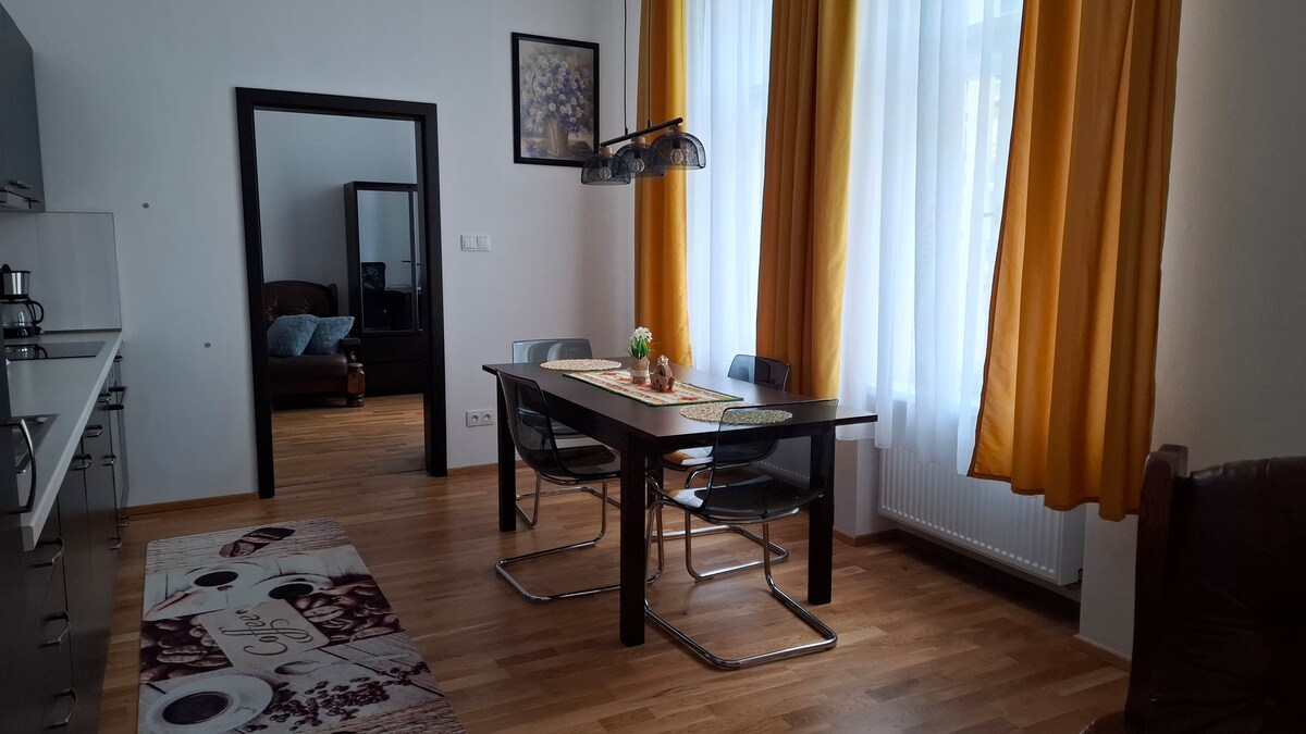 A felszerelt lakás egy téglaház 1. emeletén található, tágas, jellegzetes stílusú (otthon érezheted magad ott), egy teljes felújítás után egy stratégiai helyen - egy rövid séta az oszlopsorig és az erdőig, egy rövid sétára az éttermektől és egy élelmiszerbolttól. Kert a ház mögött. Utcai parkoló-automata- kártyával.(5 perc a lakástól gyalog)- nagy parkoló - alacsony ár. Wifi, mosógép, gyógyszertár, kávé és tea. 20 méterre a lakástól található a híres Ventura étterem és pub Europeák. 1 km-en belül a medencében vagy masszázz az Elizabeth 's Spa-ban.