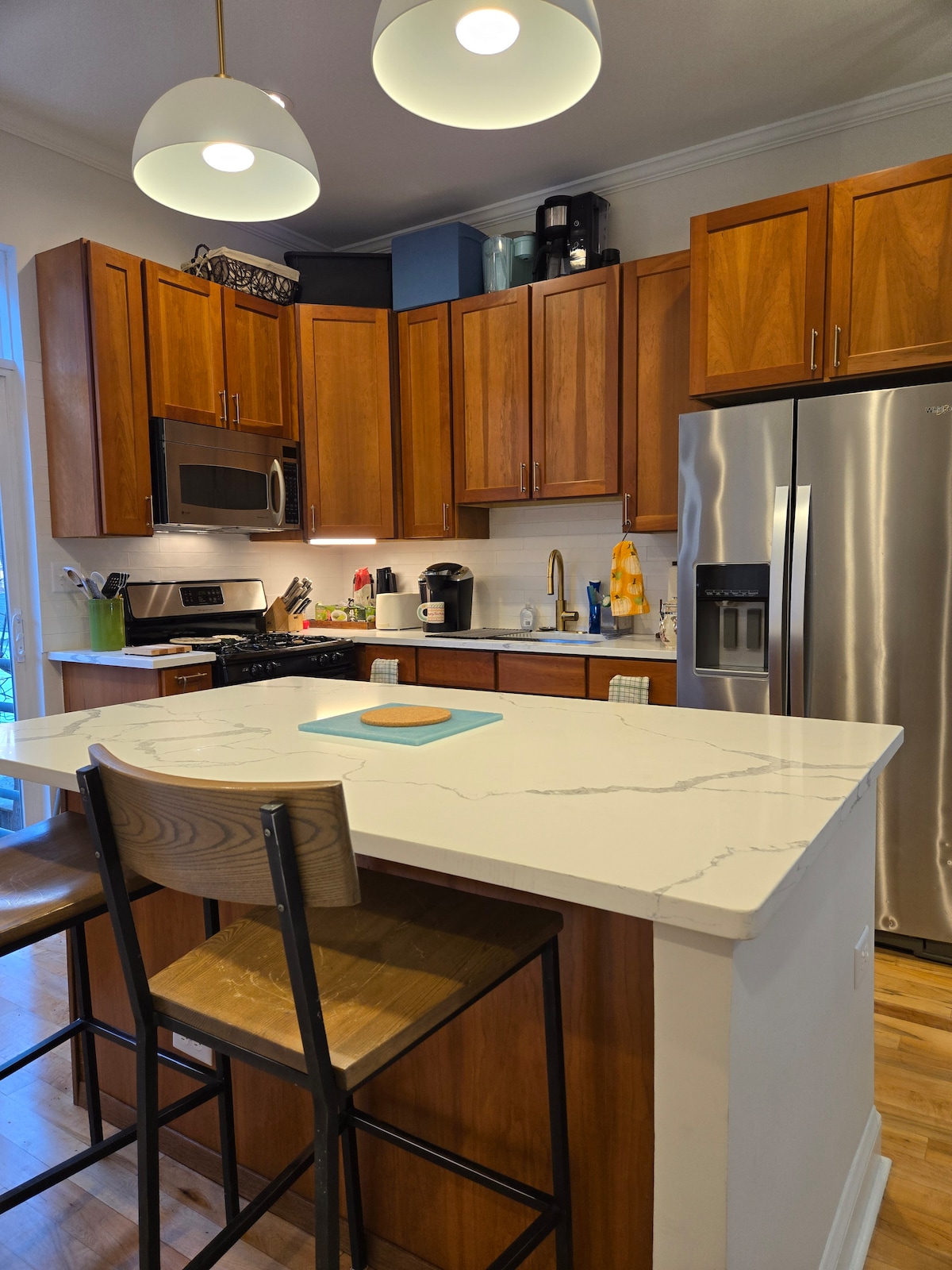 Nagy, 1 hálószobás, ízlésesen berendezett és jól felszerelt. 4 férőhely (5 férőhelyes, felfújható). Franciaágy BR-ben, teljes méretű futonágy LR-ben. Elég tágas ahhoz, hogy két ember kényelmesen működjön. A terasz, a tűzrakóhely és a grill használata. A nyüzsgő Lincoln Square-en található. Lépcsők a Rockwell Brown Line el állomáshoz, éttermekhez, bagelbolthoz és jóga-/masszázsstúdióhoz. Néhány háztömbnyire üzletek, éttermek és mozi található! Egyszerű utcai parkolás ingyenes engedélyekkel. 2. szintű elektromosautó-töltő áll rendelkezésre.