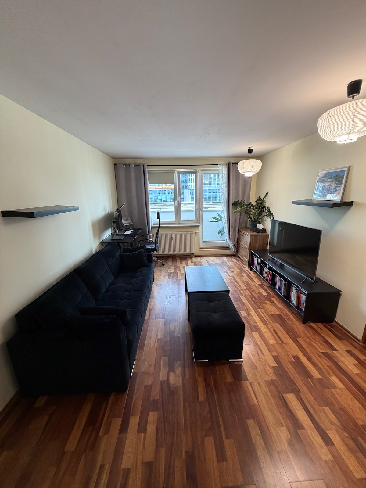 Itt elkerülheted a város nyüzsgését. A lakás világos és szerényen berendezett, kényelmes és békés helyet kínál a vendégeknek a kikapcsolódásra egy hosszú városnézéssel vagy üzleti találkozókkal töltött nap után. Ha egy kis kikapcsolódásra vágysz, nyugodtan ringasd magad egy kényelmes hintaszékben. Az erkély frissítő szabadtéri teret kínál, ahol élvezheted a reggeli kávédat vagy az esti italodat. Az apartman elhelyezkedése Varsó szívében tökéletes kiindulópont ennek a nyüzsgő városnak a felfedezéséhez.