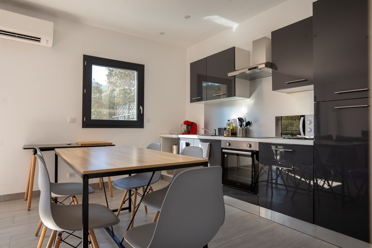 A „Casa Léa ” ez az új ház 7 percre található a Valinco-öböl gyönyörű strandjaitól és 200 méterre Filitosa kihagyhatatlan őskori helyszínétől. Ideális 4-6 fő elszállásolásához, családdal, barátokkal vagy párokkal, 2 hálószobával és egy kanapéággyal. Minden modern kényelemmel, teljesen felszerelt konyhával, csatlakoztatott tévével, mosógéppel, vasalóval, hajszárítóval és füstérzékelővel, kerti bútorokkal és asztallal felszerelt terasszal, elektromos grillezővel és saját parkolóval rendelkezik.