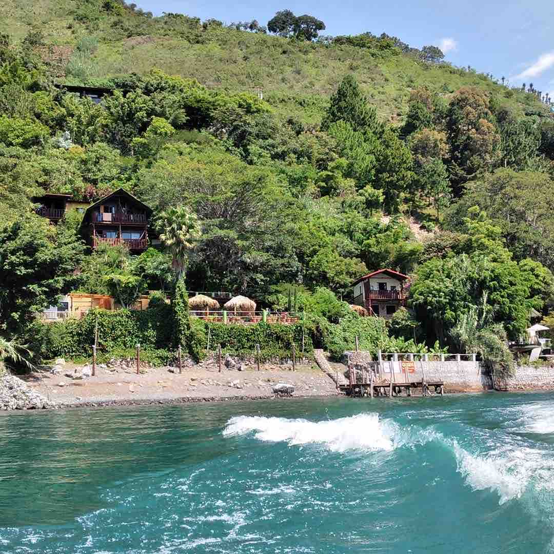 Our cozy guest cottage is located right on the lake shore so you'll enjoy de magnificent view of Lake Atitlan and its three stunning volcanoes. You just need to walk through our beautiful garden and dip straight into the refreshing waters of the majestic lake. Or if you're interested in exploring other towns around the lake, you can easily take a boat because we have a public dock right in front of our property! We are located in a very peaceful and safe area of Santa Cruz.