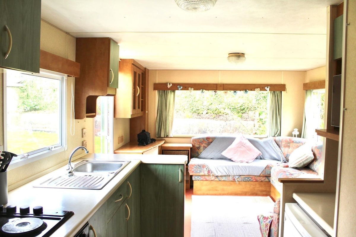 Statikus lakókocsink 16. századi otthonunk régi szalonjában található. Gyönyörű kilátással és vidékkel körülvéve - csendes, privát és vidéki. Egy kicsit „off-grid” vagyunk - tökéletes hely az olvasáshoz, a csillagokkal teli sötét égbolt megtekintéséhez, a seregélyek a fejünk felett, és teljes békében alszunk. Nagyon kutya- és családbarátak vagyunk itt is - háziállatok is bejöhetnek, van egy privát kert és egy teljesen zárt paddock, amely a háztömbön/játéktőkön futkározik. A gyerekek szabadon barangolhatnak!