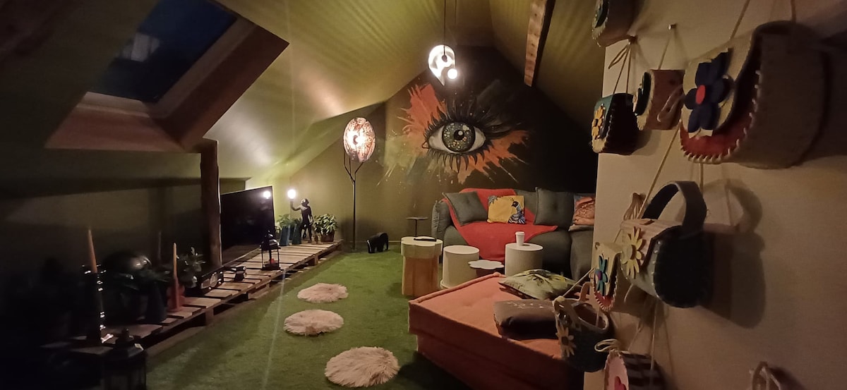 Magic Studio, ez egy nagyon meglepő 35 m2-es otthon! A vendégház 1500 m2-es földterületen található a ház melléképületében, és saját terasszal rendelkezik, amelyet nem hagynak figyelmen kívül. Imádni fogod a pihenést a függőhálóban, és megnézheted a kedvenc Netflix-műsorodat a beltéri függőágyban. Válaszd ki a hangulatodat a csatlakoztatott lámpákkal! Az erdő 5 percre van, a tenger pedig 15 perc autóval. Az ébresztőóra a normandiai vidékre nyíló panorámával a nap felé néz.