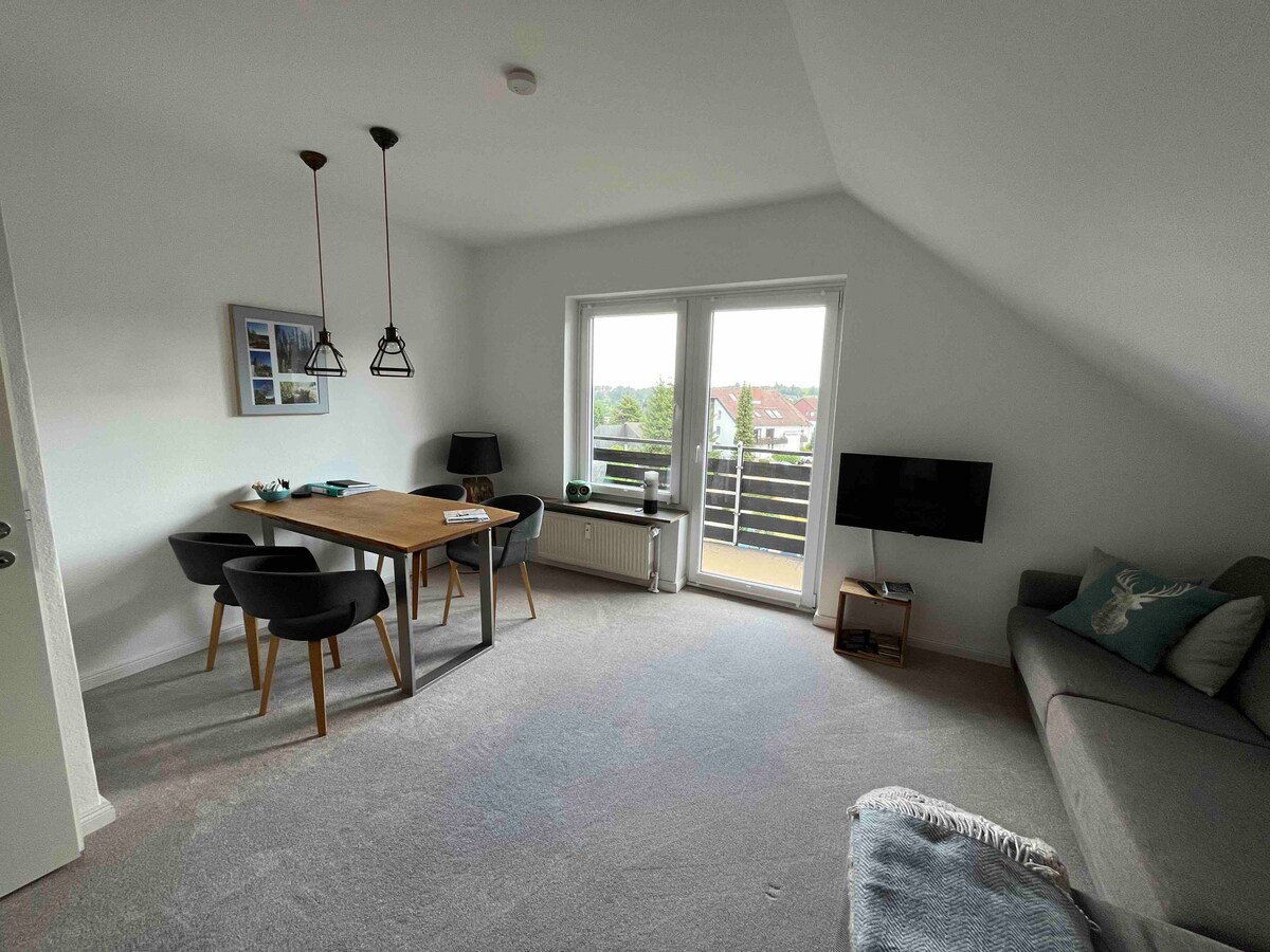 Hangulatos kis apartman erkélyrel és kilátással.
