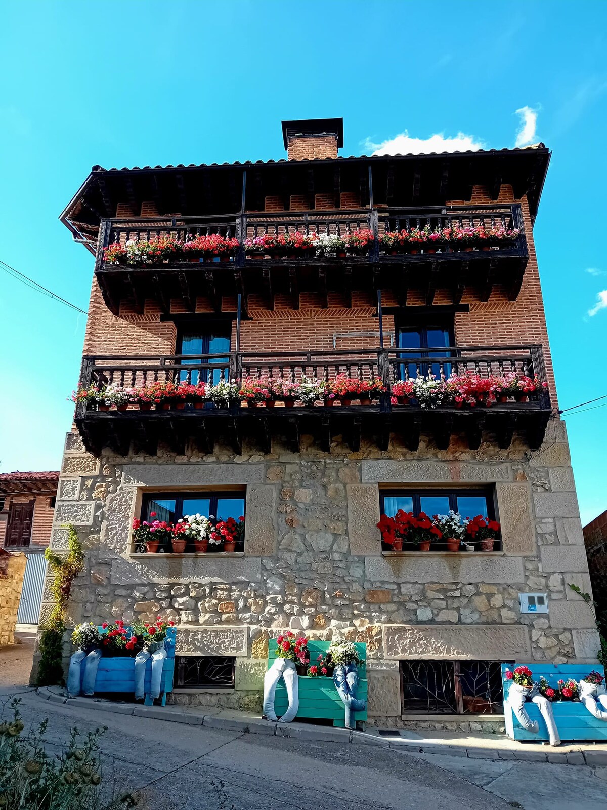 Látványos kő- és faház Rabanera del Pinarban. Luxus vidéki szállás 4 hálószobával és 2 fürdőszobával + egy vidám padlással, amely ideális gyermekeknek. Tökéletes a kikapcsolódásra vágyó családoknak. Pihenj a verandán és a kertben, mindössze egy rövid sétára a Sierra de Urbión-tól. Ideális kiindulópont a természet felfedezéséhez és felejthetetlen emlékek gyűjtéséhez.