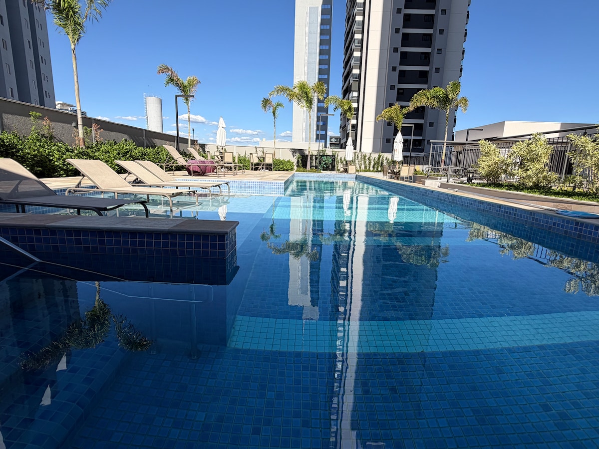 A családod mindenhez közel lesz, ha ezen a jól elhelyezkedő helyen szálltok meg. Két hálószobás apartman gyönyörű kilátással 5 percre a belvárostól, wifi, törölközők, szárító és vasaló 2 percre a Carrefour-tól, a főutcáktól, a repülőtértől, a gyógyszertárak, a BOS-tól, a Pq. das Águas-tól és a bevásárlóközpontoktól Lakosztály kétszemélyes ággyal és egy másik szoba két egyszemélyes ággyal Nappali kényelmes kanapéval és okostévével Konyha hűtőszekrénnyel, kávéfőzővel, tűzhellyel, mikrohullámú sütővel és minden szükséges eszközzel Parkoló és lift