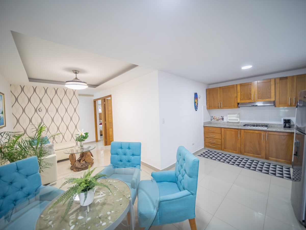 Gyönyörű és világos 1 hálószobás lakás egy luxus tengerparti közösségben, az Infiniti Blu-ban. A komplexum sétatávolságra található Sosúa összes éttermi bárjától és üzletétől, de trópusi paradicsomi hangulattal. Az egységben van légkondicionáló mind a nappaliban, mind a hálószobában. Kingsize ágy. 50hüvelykes SmartTV, kábel és wifi. Kérésre palackozott víz is rendelkezésre áll. Magas mennyezet és világos dekoráció a tágas tengerparti hangulathoz. Erkély kültéri ülőhellyel és kilátással a kertre. Az elektromosság extra.