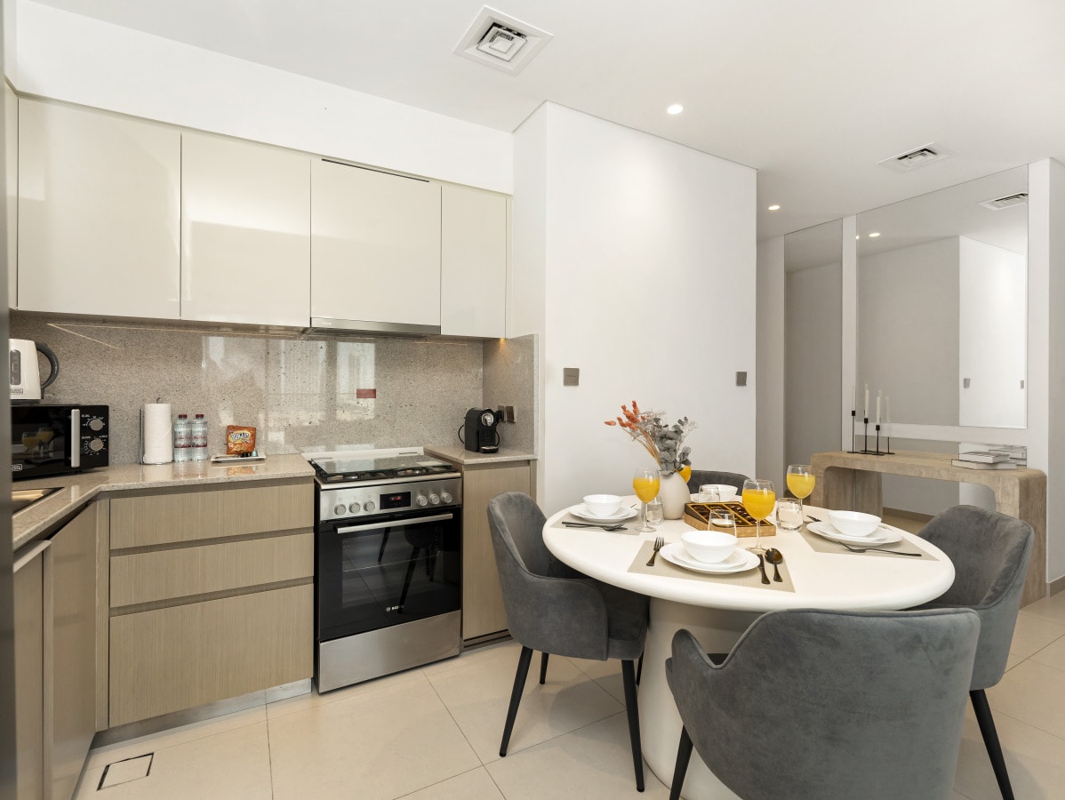 Breathtaking Burj Khalifa views from this private 2-bedroom apartment featuring a huge balcony, located within Vida Dubai Mall Hotel and Residence directly connected to Dubai Mall. The apartment is finished with premium branded furniture and a refined modern design throughout. Guests enjoy complimentary access to all hotel amenities and facilities, including pool and gym, along with an exclusive 20% dining privilege across the hotel’s restaurants, bars, cafés, and room service.