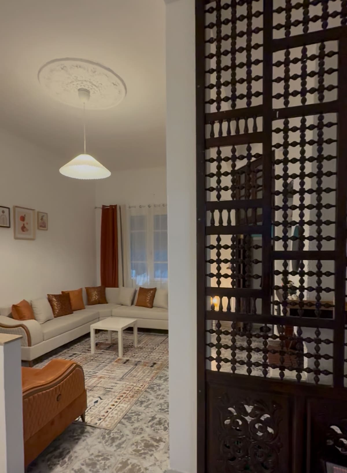 Új triplex található a panorámás úton a Corniche de Bizerte felé. Két nagy nappalival, két hálószobával, franciaággyal, babaággyal, terasszal és teljesen felszerelt konyhával rendelkezik. Minden hálószobához saját fürdőszoba tartozik. A szálláshely a festői út elején található, percekre a strandtól. Sok közeli bolt. A belsőépítészet modern stílusú, néhány keleti vonással. Mindent megtettünk, hogy zen és kellemes légkört kínáljunk.