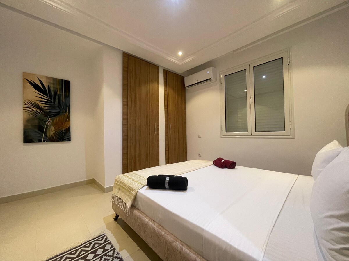 Modern szállás a Corniche közelében – Sousse Hangulatos és világos lakás mindössze néhány lépésre a Corniche-tól és a strandtól. Tökéletes pároknak vagy családoknak . Kényelmes hálószoba, felszerelt konyha, Wi-Fi, légkondicionáló és okostévé. Sétatávolságra kávézók, üzletek és a Medina. Élvezd a nyugalmat, a napsütést és a tengerparti Sousse legjavát. Foglalj szállást még ma!