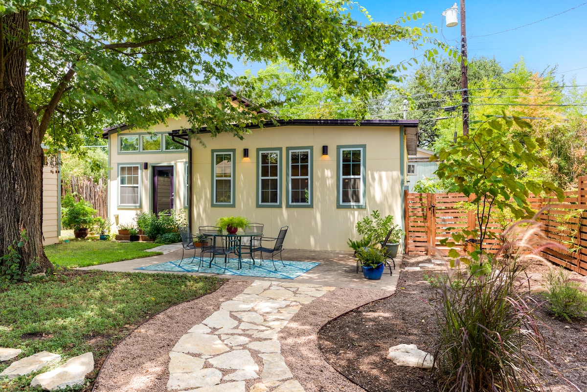 Egy jól megtervezett, csendes és meglepően tágas miniház Austin ikonikus 78704-es számú házában. Élvezd az élő zenét, a kávét, a sörfőzdéket, a vintage üzleteket, a túrázást és még sok mást. Gyors Wi-Fi-vel és kényelmes ággyal, ahol feltöltődhetsz a koncertek után, tökéletes helyszín a távoli munkához és az ausztini legendás helyszíneken töltött éjszakákhoz, vagy bármihez, ami Ausztinba hoz! Az átgondolt részletek és a természetes fény könnyed, pihentető szálláshellyé teszik.