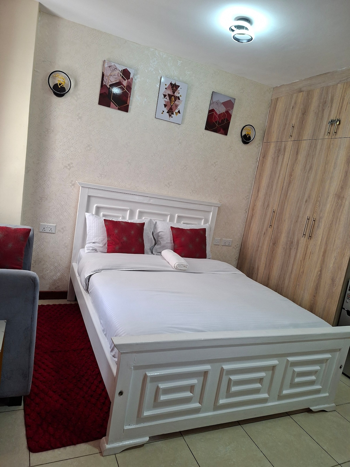 Enjoy a comfortable stay in this modern, well-lit studio apartment in South B, Nairobi, ideal for transit passengers, business travelers, and tourists. Conveniently located near JKIA, Wilson Airport, Nairobi CBD, major malls, and key road networks. The studio is fully furnished with fast WiFi, a workspace, kitchenette, self check-in, free parking, lift, and 24-hour security. Close to Nairobi National Park and top attractions.