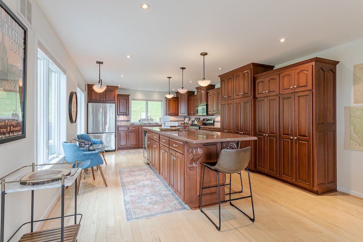 Located in the heart of the Finger Lakes Wine Region there is no shortage of adventures to be had. Summer vacations with all the amenities of home and the fun of your own pond, a hot tub, fire pit and a large yard. Fall brings beautiful foliage, nearby wineries for tours, tastings & hiking trails. In the Winter, a 10 minute trip to Bristol Mountain for slope recreation or even sledding on our very own property. Close to CMAC concert venue and Naples Grape Fest for the best grape pie ever!