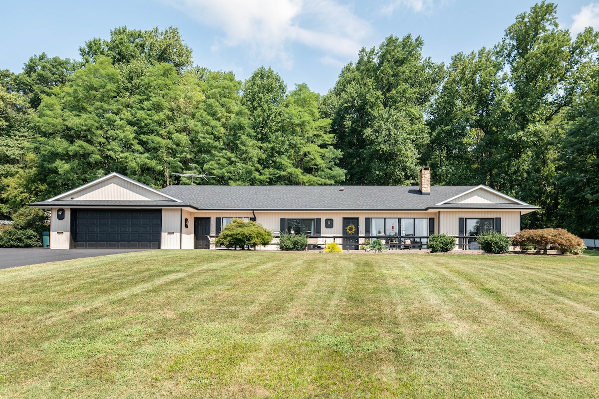 **Rusztikus rönkház Amish Countryban** Ez a privát helyen található, teljesen fából készült otthon nyugodt vidéki kilátást és gyönyörűen parkosított udvart kínál. Belül egy igazi kőből készült fatüzelésű kandallót, bőrkanapékat és kézműves rönkágyakat élvezhetsz. Egy teljesen felszerelt konyha és egy biliárdasztallal felszerelt játékszoba is hozzájárul a bájhoz. A hátsó teraszon grillező és egy 5 személyes pezsgőfürdő található Bluetooth-hangszórókkal, amelyek tökéletesek a kikapcsolódáshoz. Békés kiruccanás rusztikus eleganciával és modern kényelemmel!