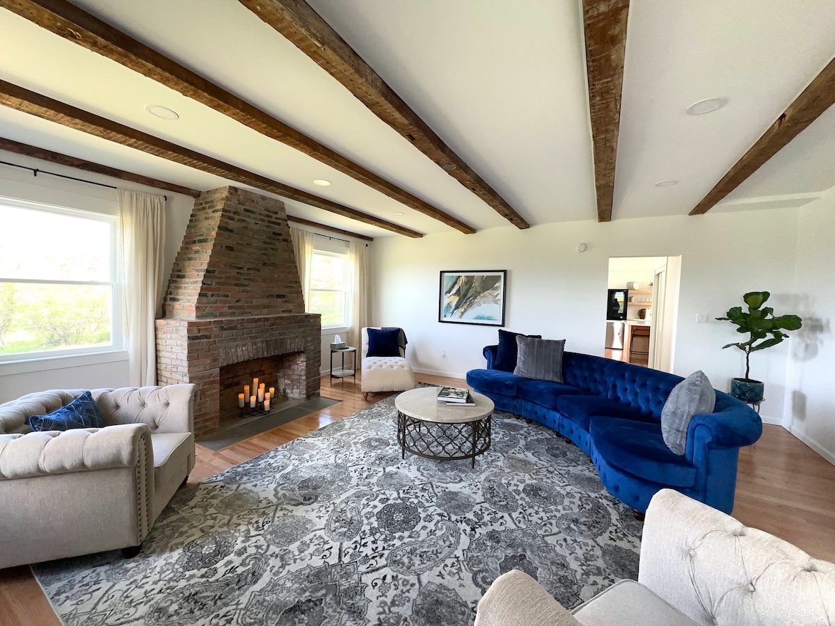 Experience luxury at Barn Manor, a converted barn surrounded by fields and forests. Relax in a jetted tub with heated floors, enjoy fireside evenings, and admire custom woodwork, marble accents, indoor hammock and unique windows. Both levels are open floor plans: the first floor has a queen bed, full kitchen, living space, and bathroom; upstairs offers a king bed with Casper mattress, queen futon, and optional fold-out twin. Sleeps up to 8. Ask about long-term winter stays.