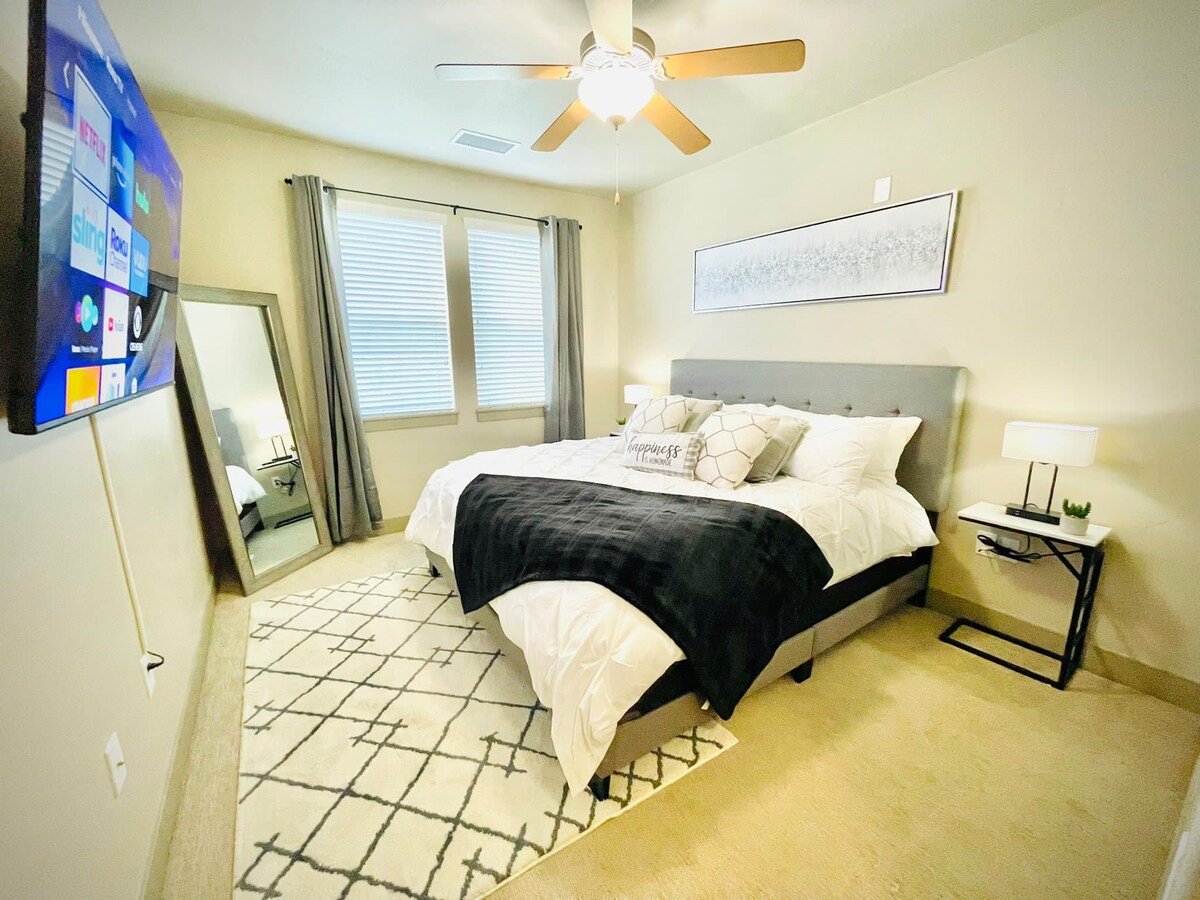 Ez az új, modernizált stúdióapartman a következőkkel rendelkezik: ⤷ Hatalmas edzőterem ⤷ Pezsgőfürdő (egész évben nyitva) ⤷ Medence (a medence a téli szezonban ZÁRVA van, májusban nyílik meg újra) ⤷ Luxury Clubhouse with/ a Pool Table and Shuffle Board ⤷ Grillezők, gázzal működő tűzrakóhelyek és savanyúságlabdapálya ⤷ Kijelölt munkaterület ⤷ Nagysebességű Wi-Fi ⤷ Teljes konyha, amely teljesen felszerelt ⤷ Ingyenes parkolás ⤷ Mounted 55" Roku TV, amely hozzáférést biztosít az összes kedvenc streamingalkalmazásodhoz ⤷ Keurig kávéfőző ingyenes kávéval, tejporral és édesítőszerrel