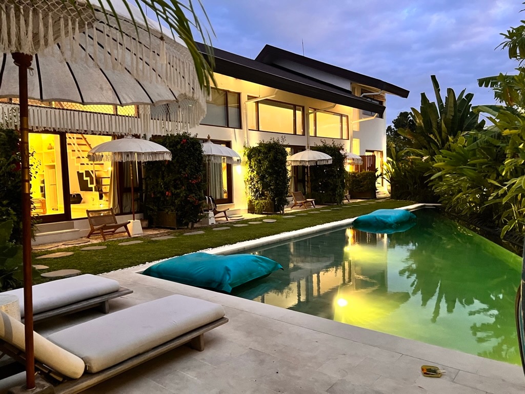 Megbízható, nagy sebességű internet, kábeltévé, minden számla és a napi takarítás is benne van az árban. Kérésre ingyenes gyümölcsös reggeli. Szállj meg Canggu szívében, Batu Bolongon, pár lépésre a legjobb kávézóktól, bároktól és világszínvonalú szörfhelyektől. Élvezd a természetes fényt és a kényelmes ágyat. Saját privát medence és napozóterasz, óceánra néző kilátás, márvány étkezőasztal 6 fő részére és magas, szellős mennyezet.