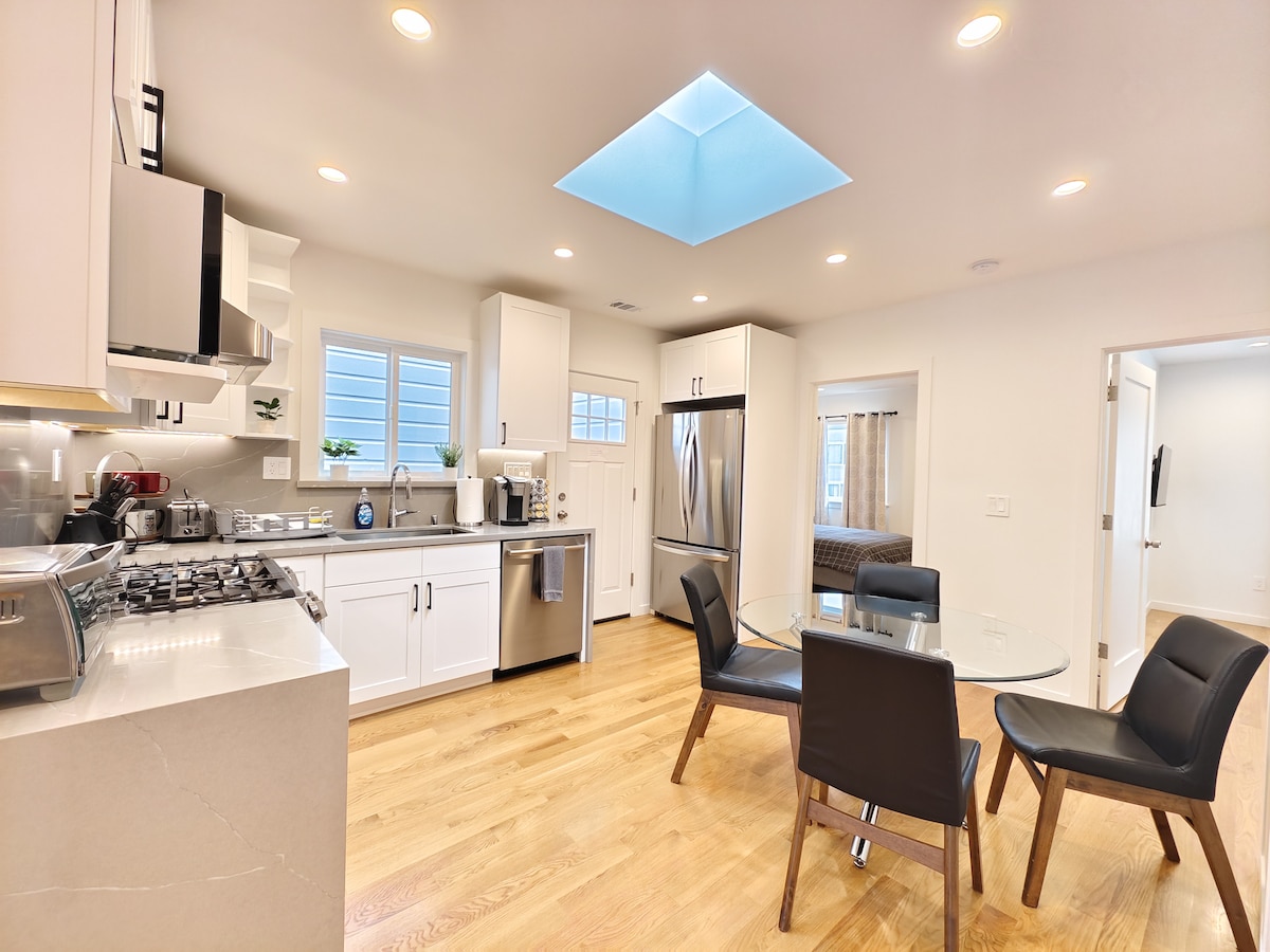 Dőlj hátra, és lazíts ezen a nyugodt, stílusos helyen. Vadonatúj vendégház építése és tájképe 2023-ban készült el. Vendégházunk teljes konyhával, Wi-Fi-vel, önálló bejutással, INGYENES parkolással, mosógéppel és szárítógéppel rendelkezik. Tesla Universal EV charger Level 2 60 amp avilable for guest use. Központi elhelyezkedés San Jose belvárosában. Gyors autóút az SJ repülőtér, az SAP Center, a San Pedro Square, a Levi's Stadium, a San Jose State University és a Santa Clara University.