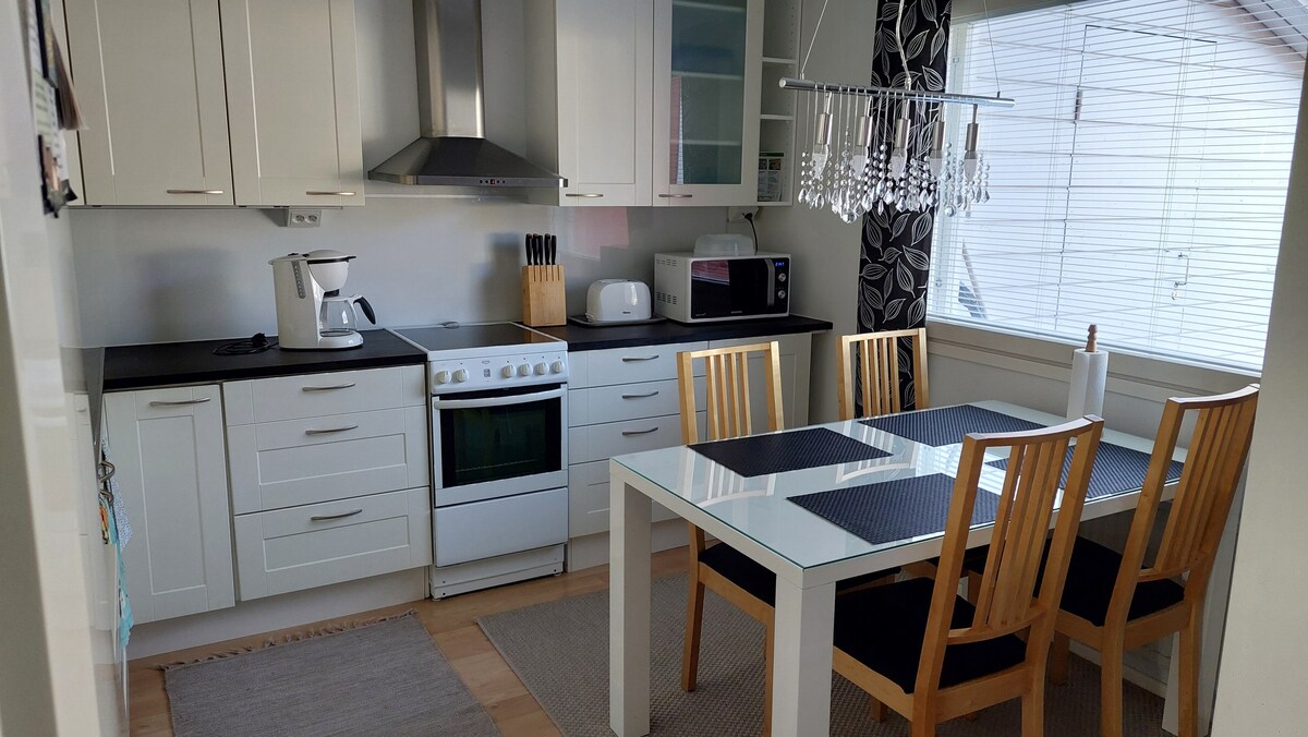 A Tapiontupa egy csendes és stílusos sorházas lakás 3,5 km-re Mikkeli központjától, Launiala városrészben. 2 km-re található a Prisma, a Citymarket és sok más szolgáltatás. Itt élvezheti a tengerparti életet a város strandján és úszhat a Saimaa-tóban (800 m-re a lakástól). Szaunázhat, fürdhet és grillezhet a saját védett teraszán. A szállás ágyneműt és törölközőt is tartalmaz. A kocsibeállóban van hely az autódnak. Gyere és érezd jól magad!